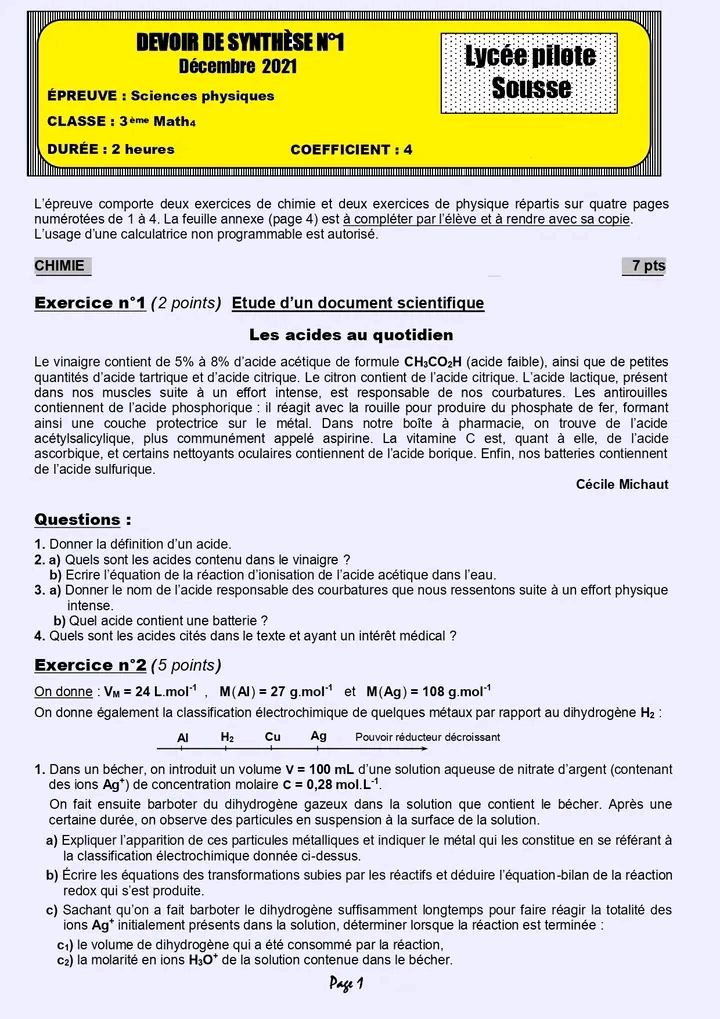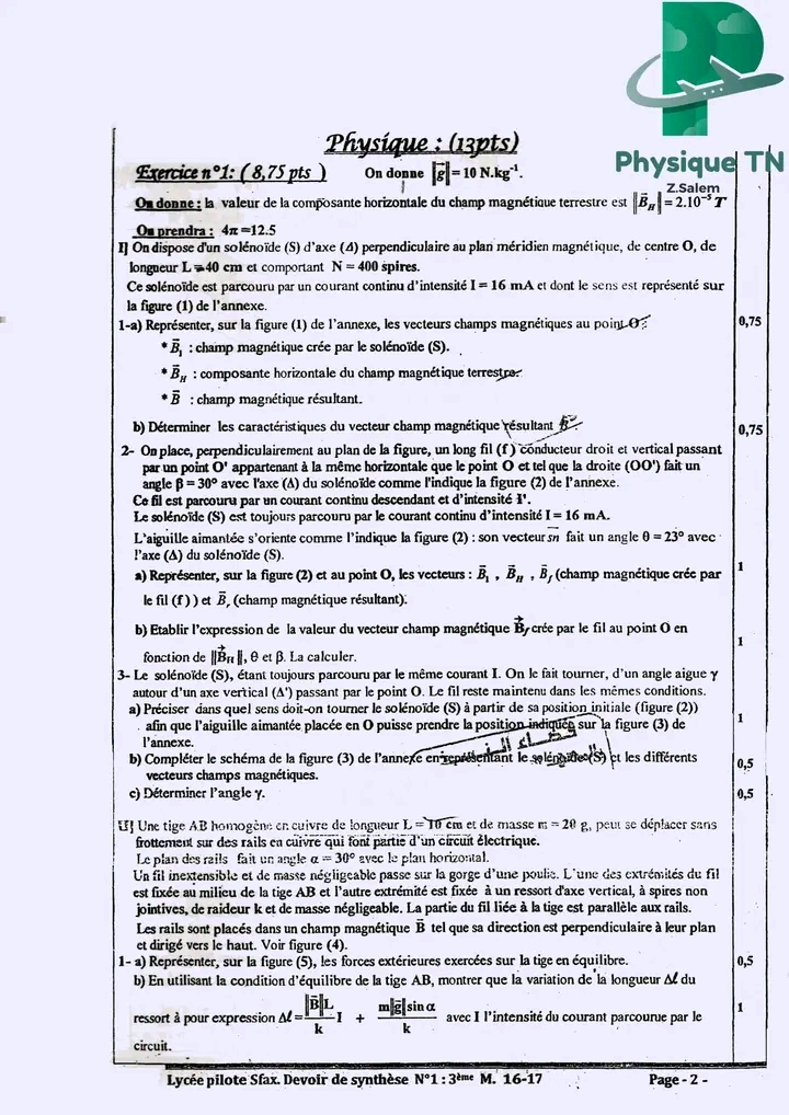 DEVOIR de SYNTHESE 1 3 physique corrigé