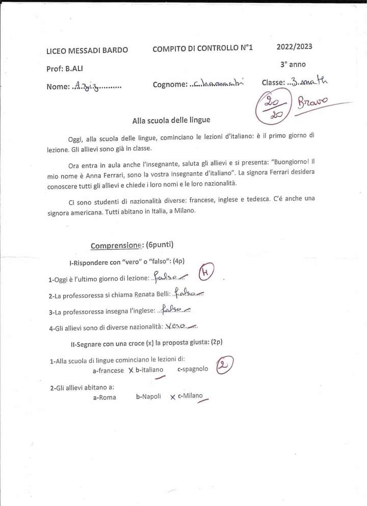 فروض مراقبة و تأليفية عدد 01 مع الاصلاح في لغات الايطالية و المانية