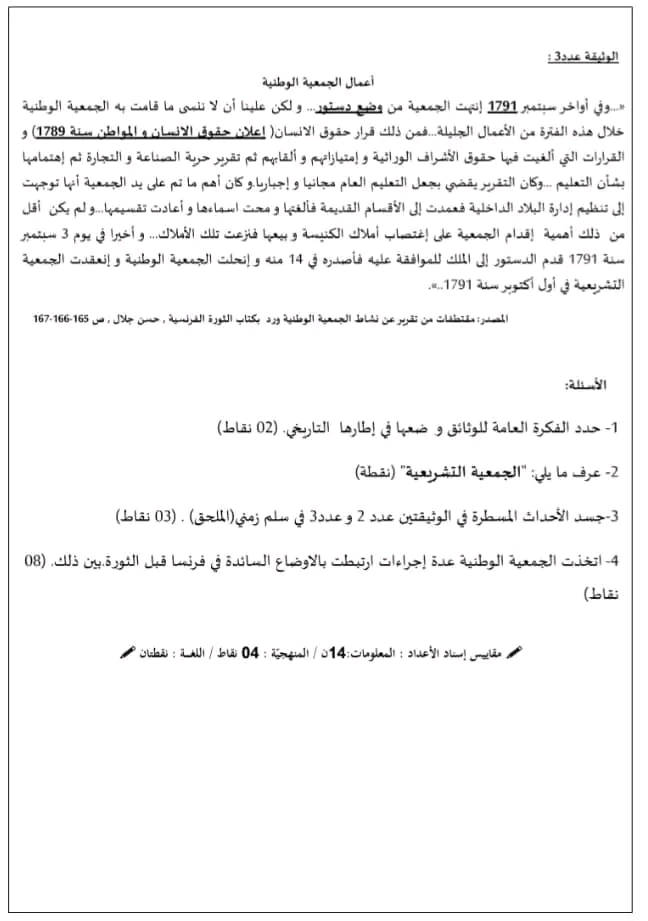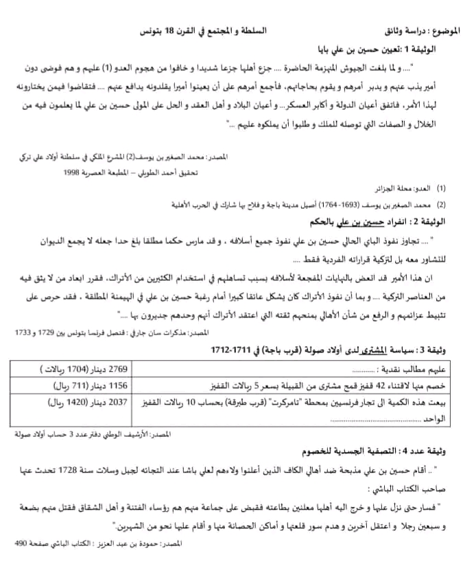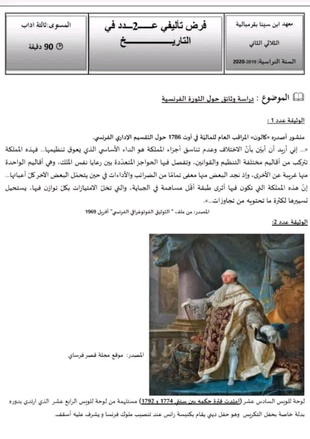 تاريخ ثالثة آداب إقتصاد وتصرف فرض تأليفي عدد 1