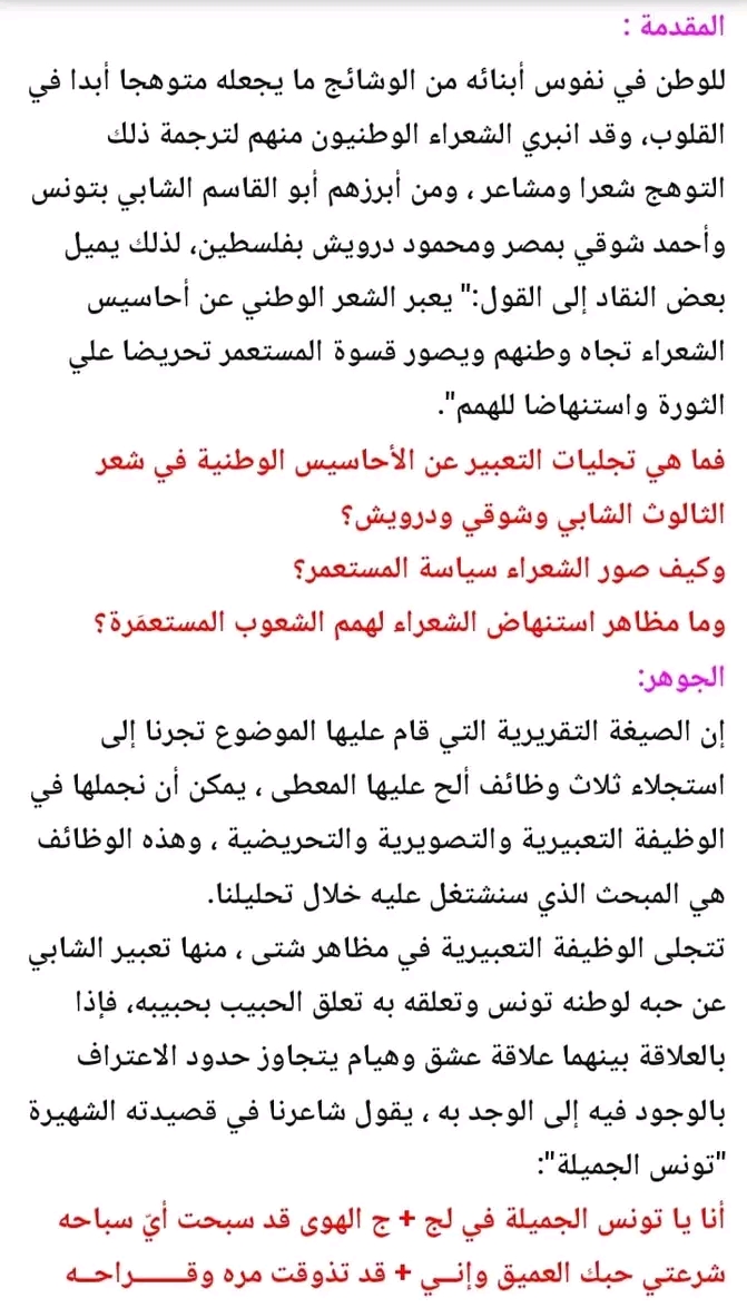 مقال عن الشعر الوطني