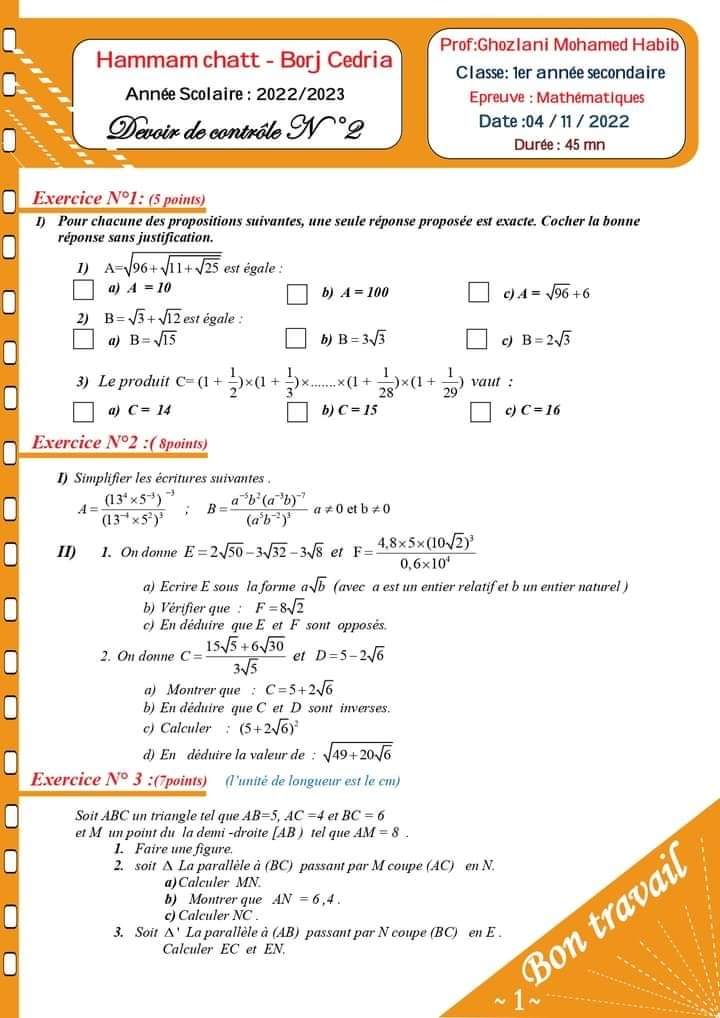 🎯 DC N°2 avec correction