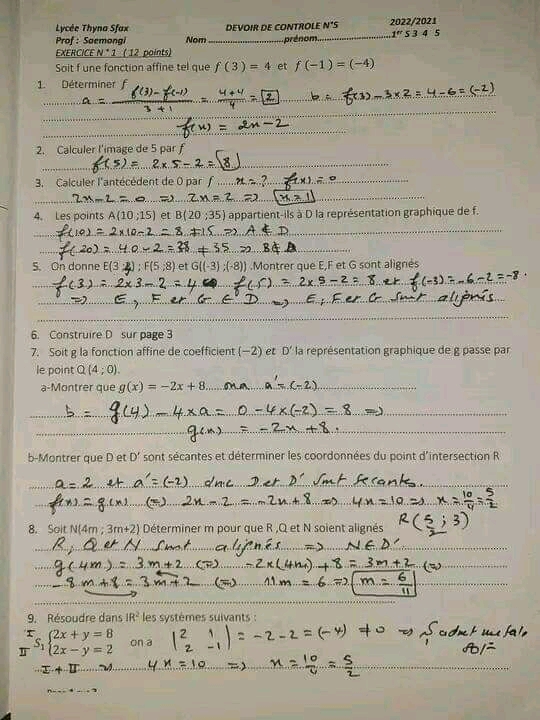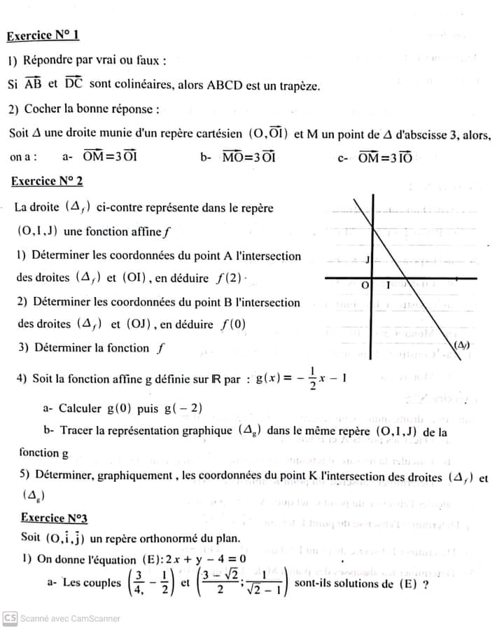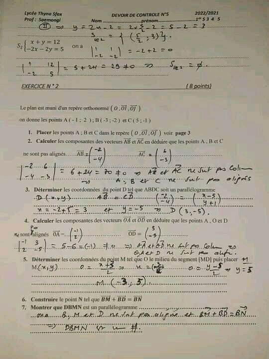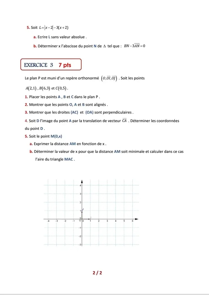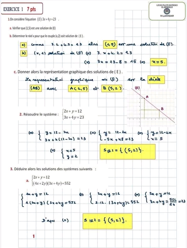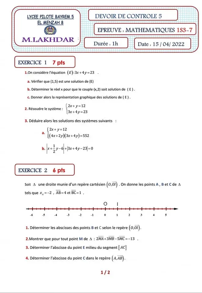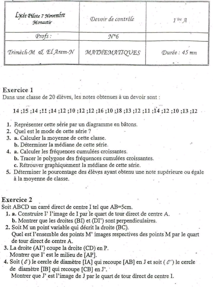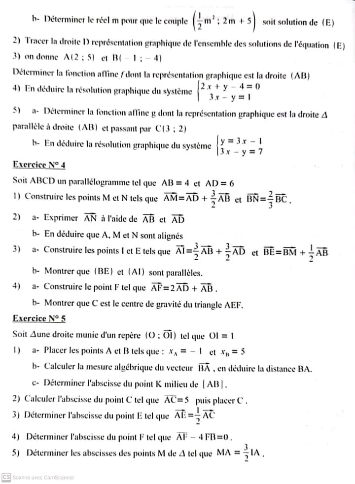 Devoir de contrôle n°5 mathématiques pilote avec correction