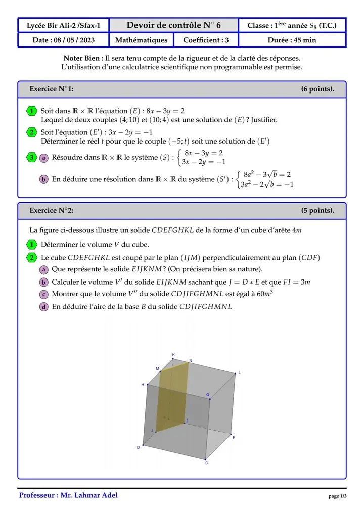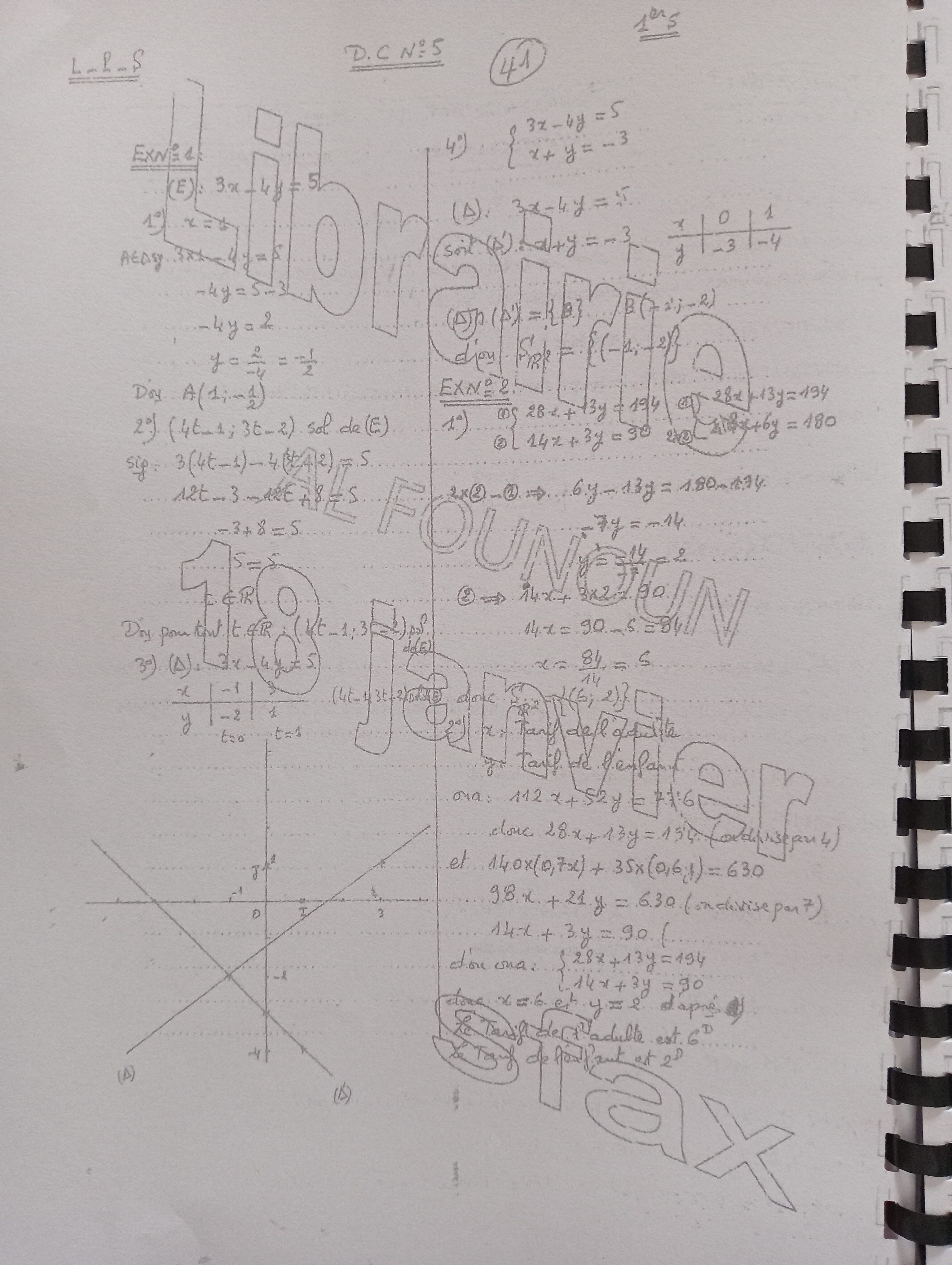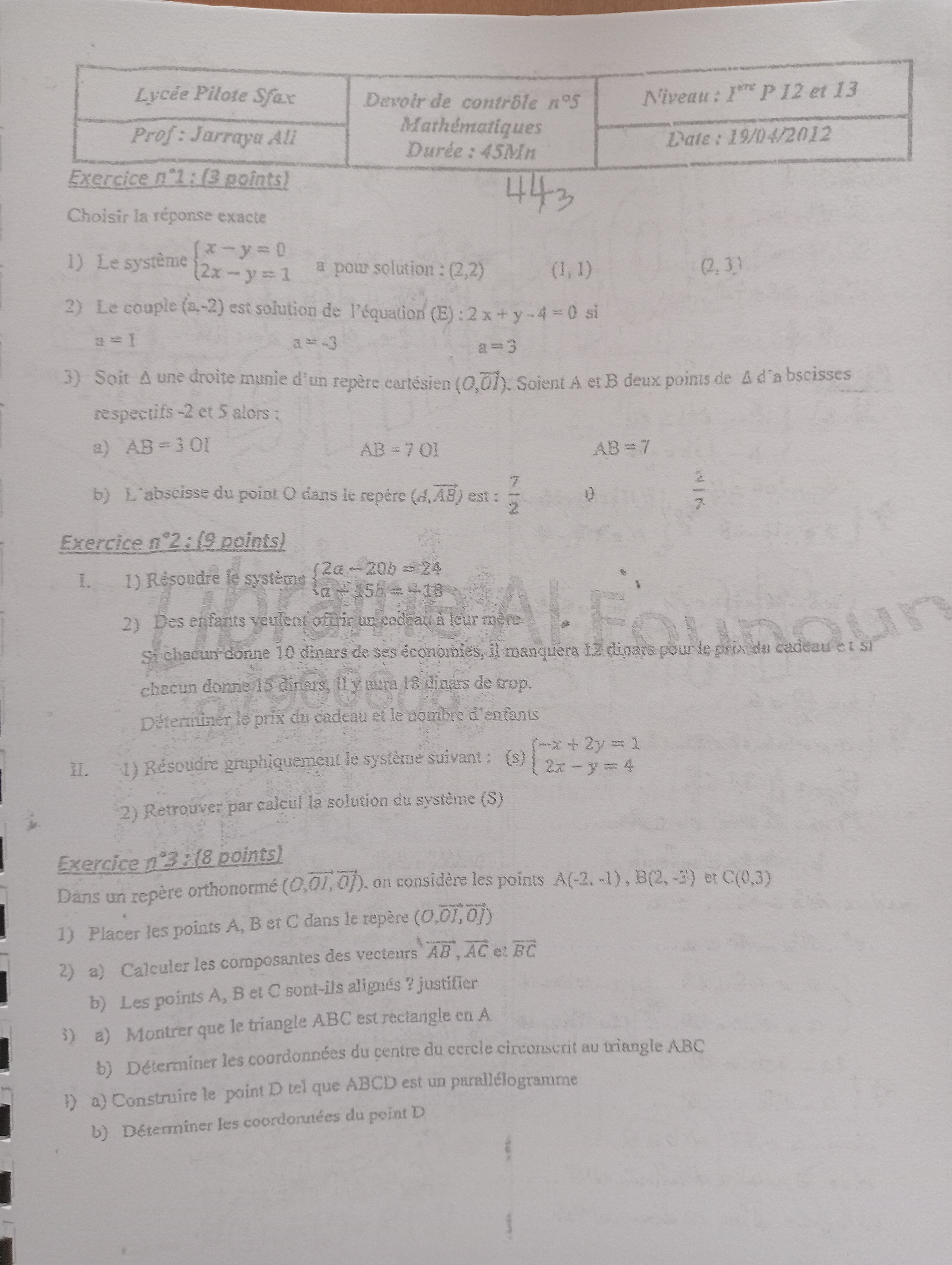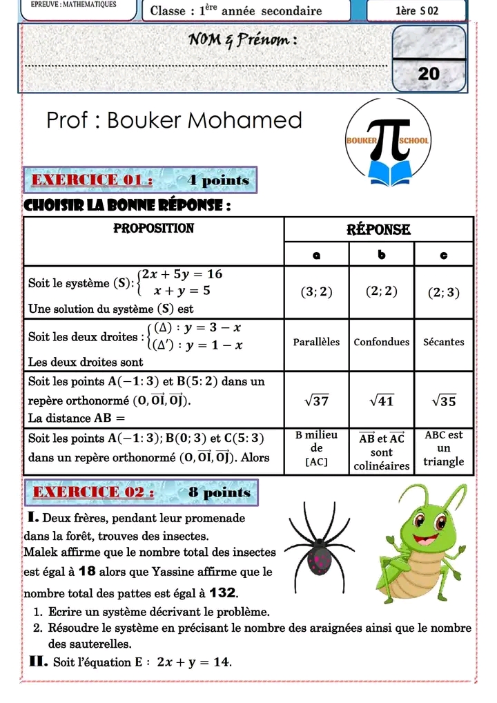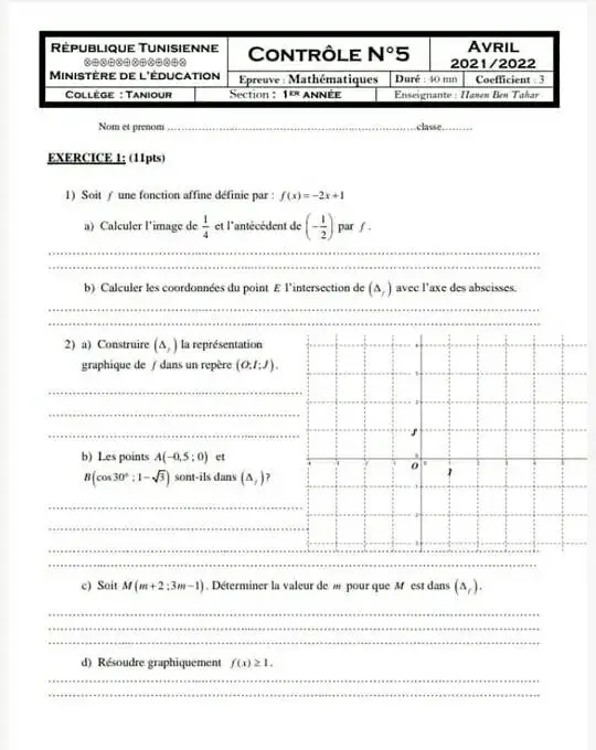 Devoir de contrôle n°5 mathématiques pilote avec correction