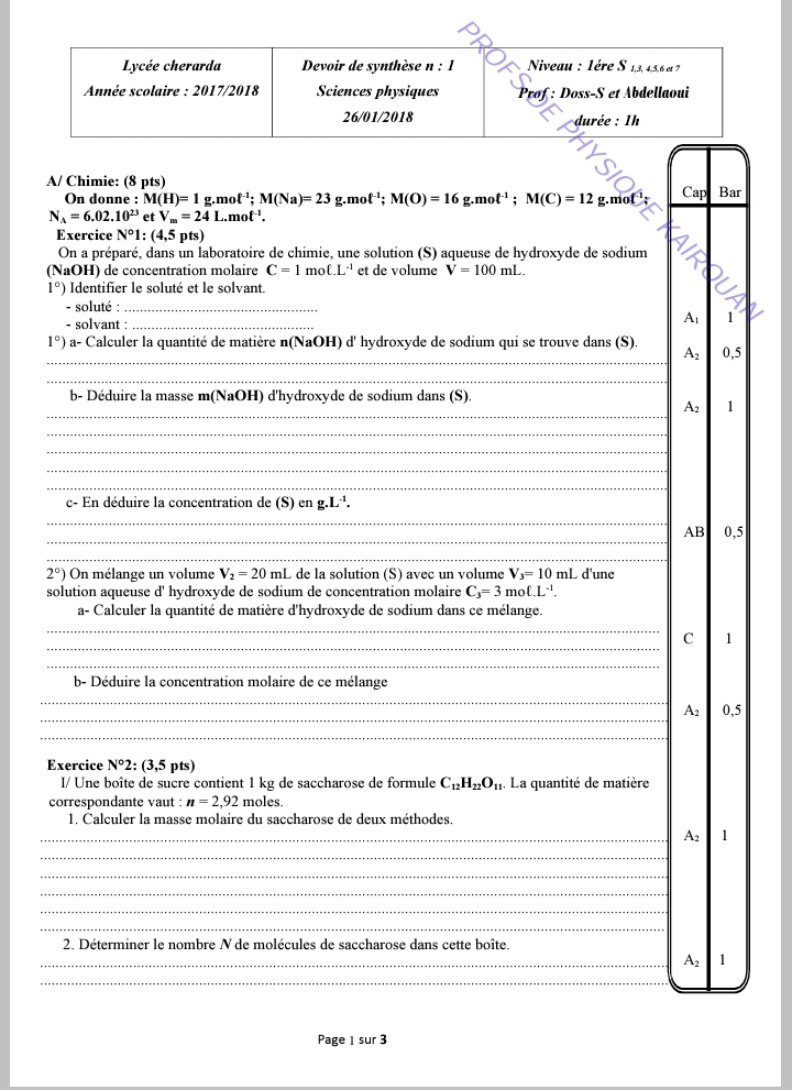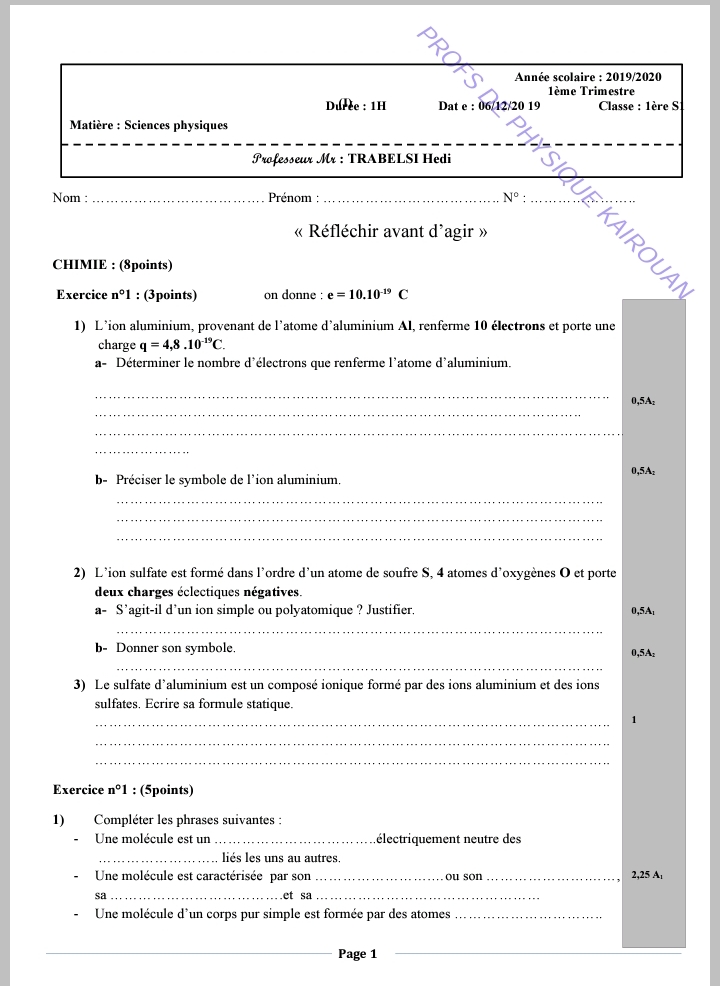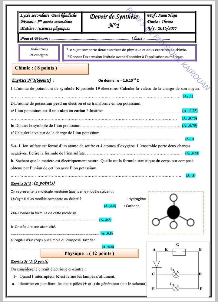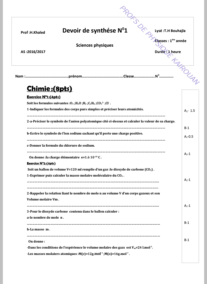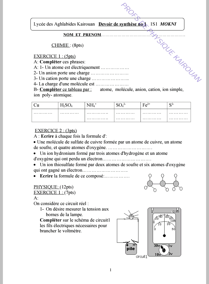 📗📒📚 Devoir de Synthèse n°1 physique avec correction