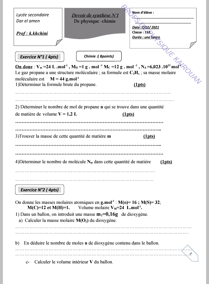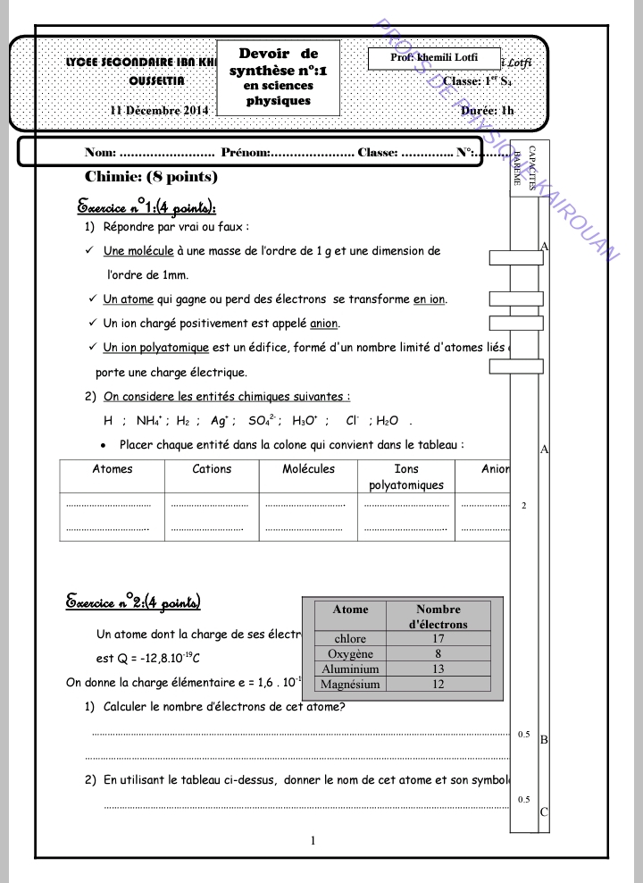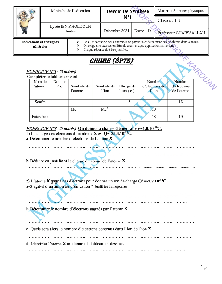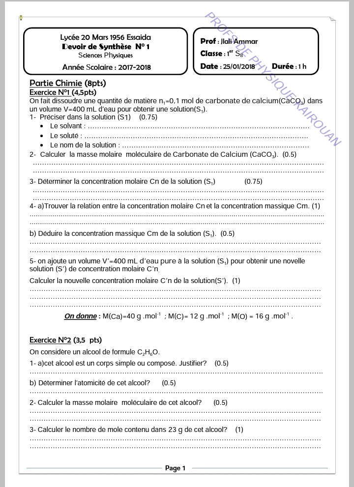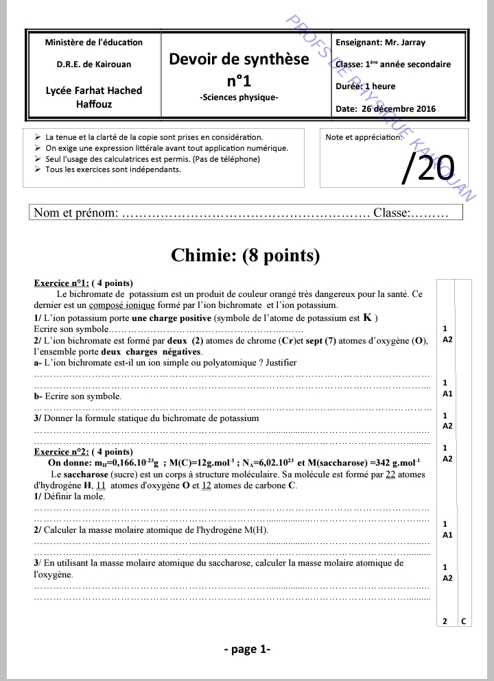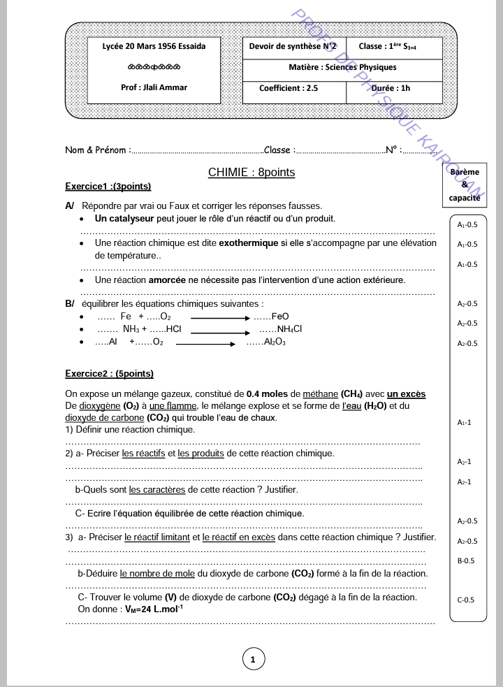 📗📒📚 Devoir de Synthèse n°1 physique avec correction