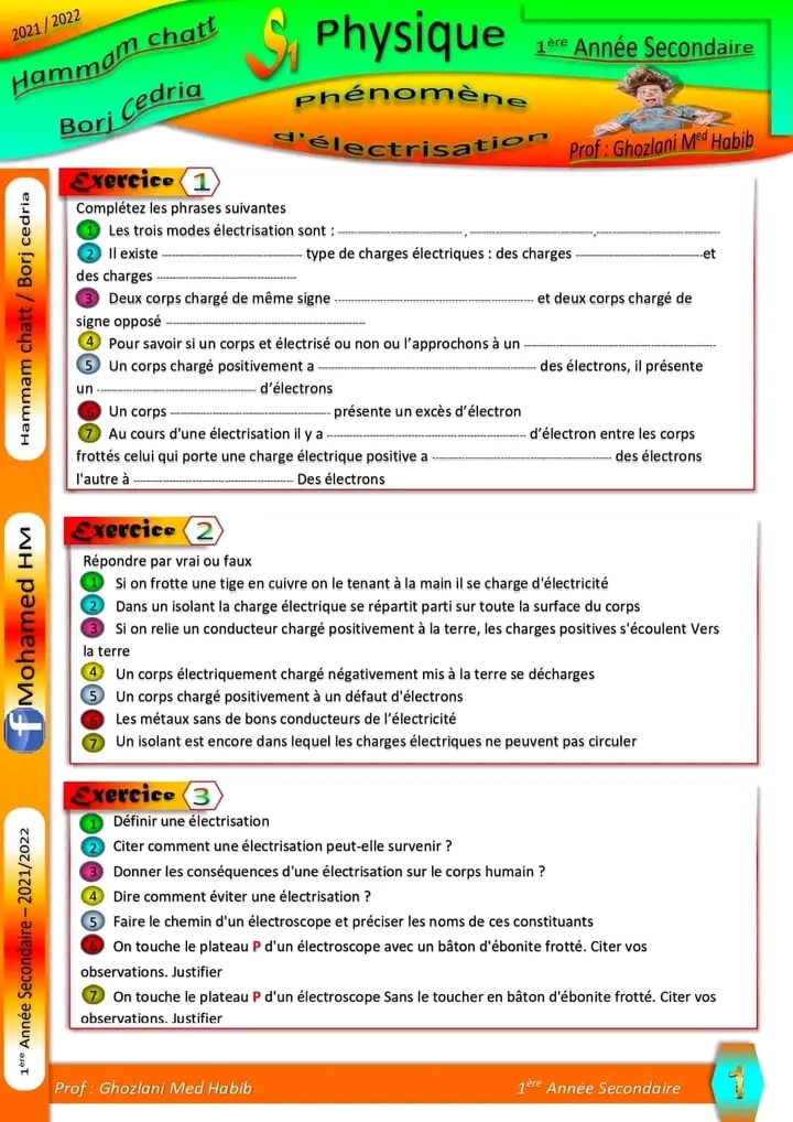 exercice te chnologie phénomène d'éléctrisation