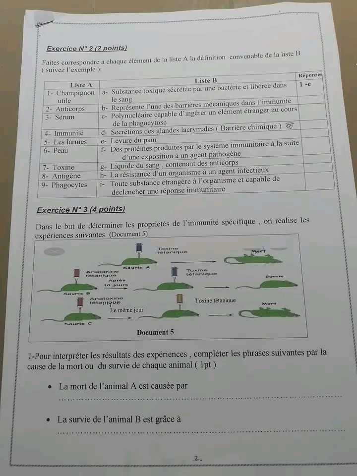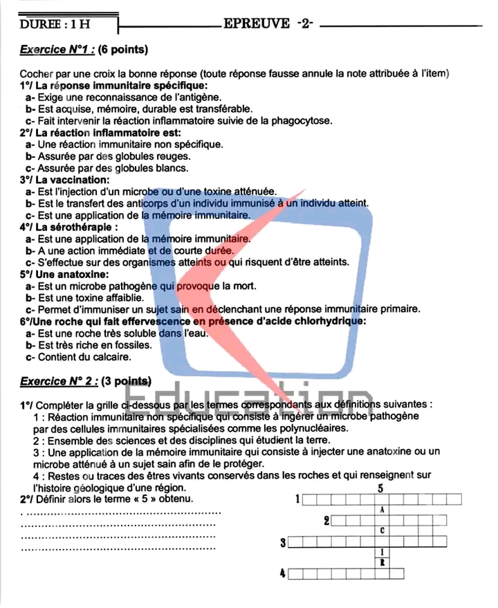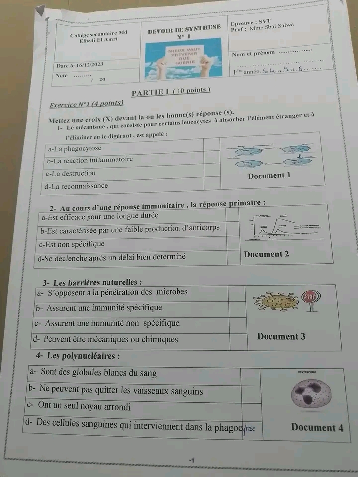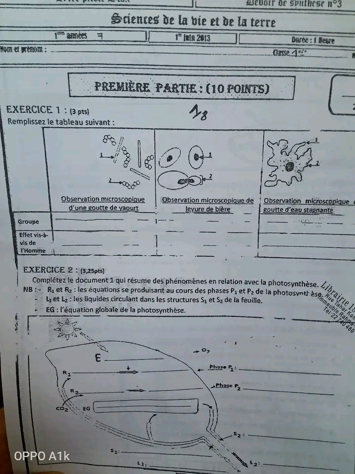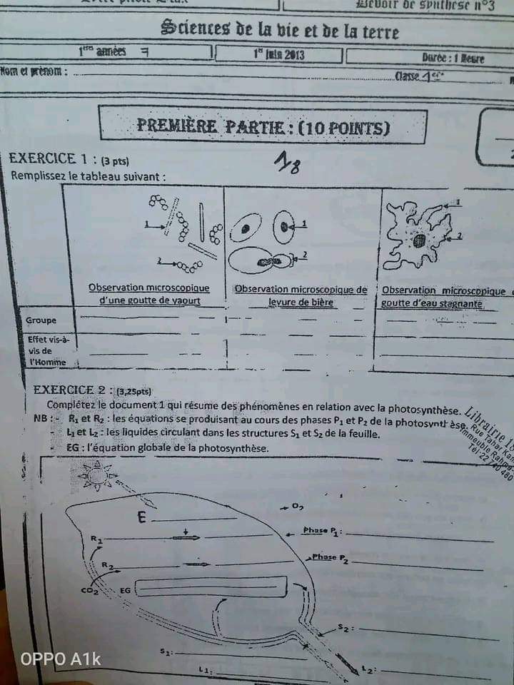 Devoir de synthèse 1 Sciences de la vie et de la terre