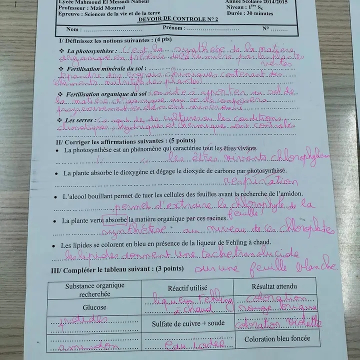 Devoir de contrôle sciences de la vie et de la terre (pilote)