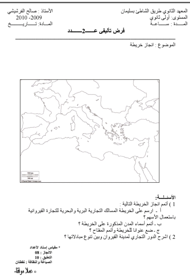 فرض تأليفي عدد 2 في الجغرافيا أولى ثانوي