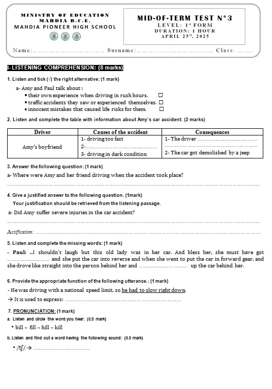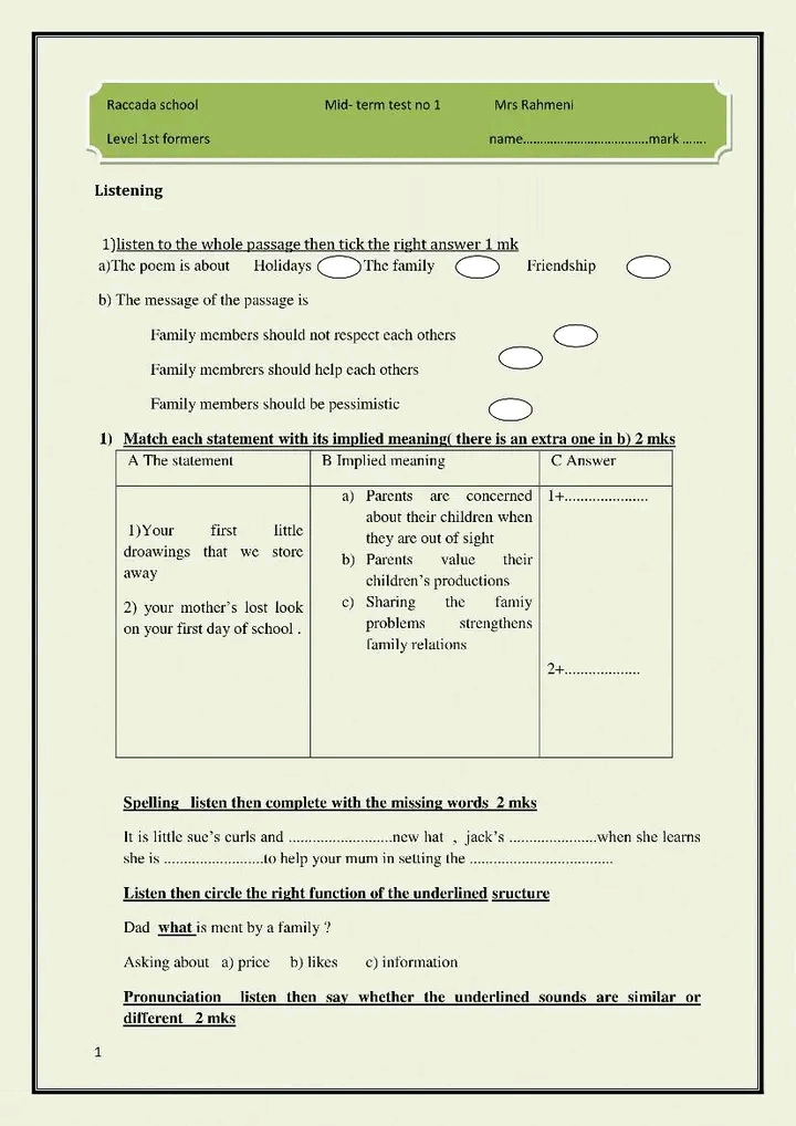 1st FORM MID-OF-TERM TEST N°:3