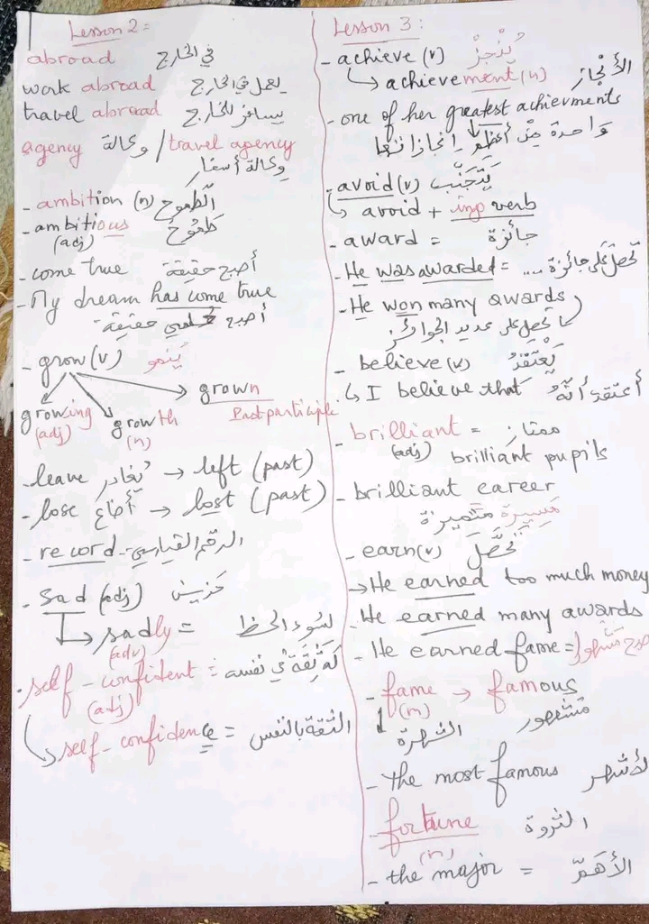 Résumé anglais 1ère année secondaire