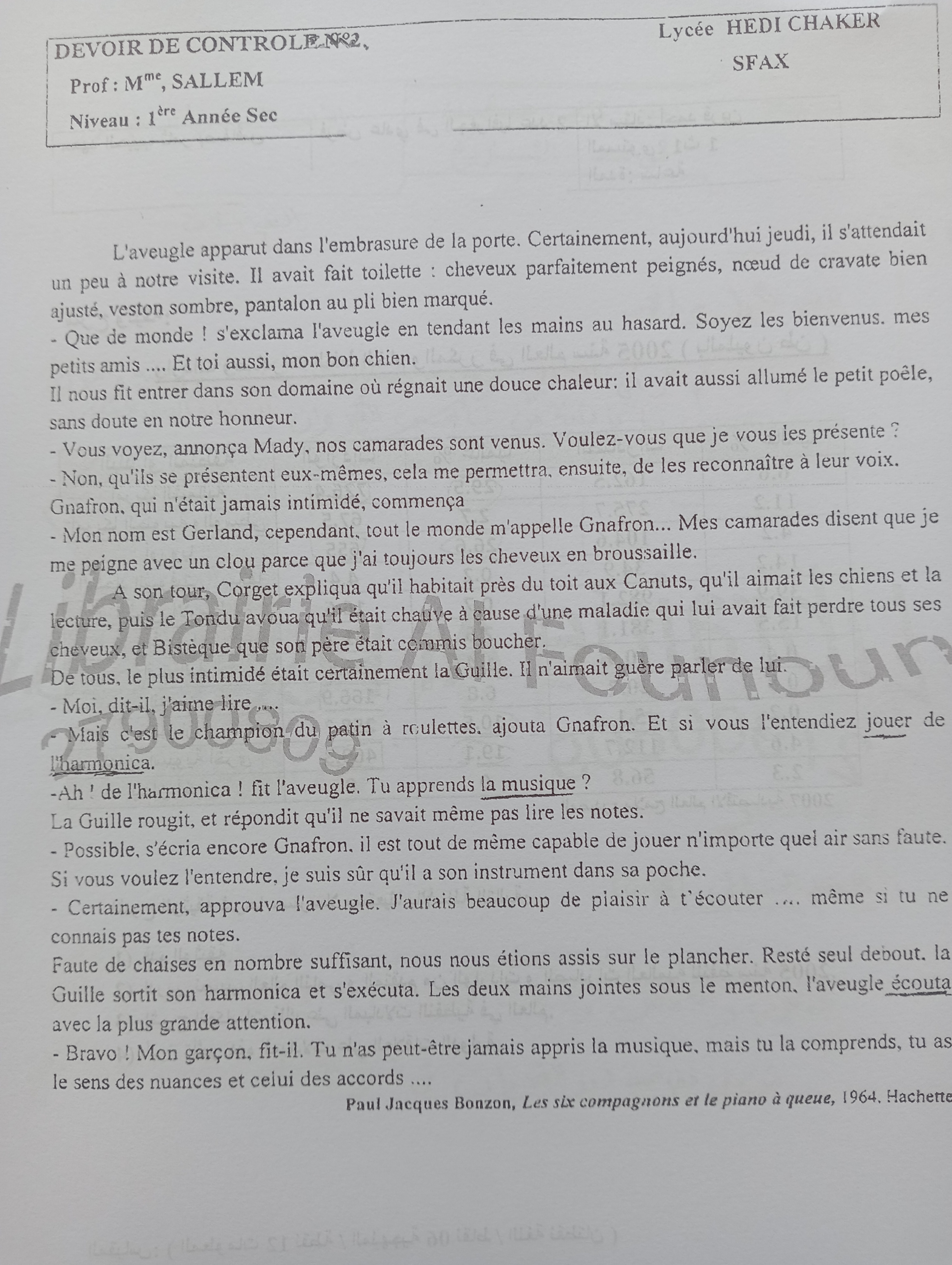 1er annee secondaire