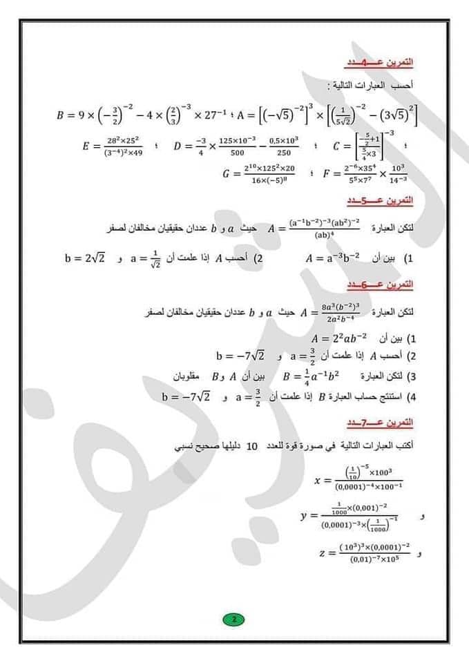 مجموعة تمارين رياضيات سنة تاسعة
