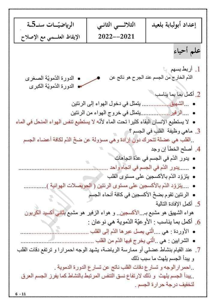 ايقاظ علمي سنة خامسة ثلاثي ثاني