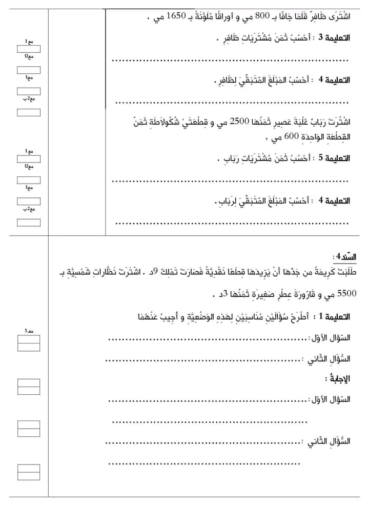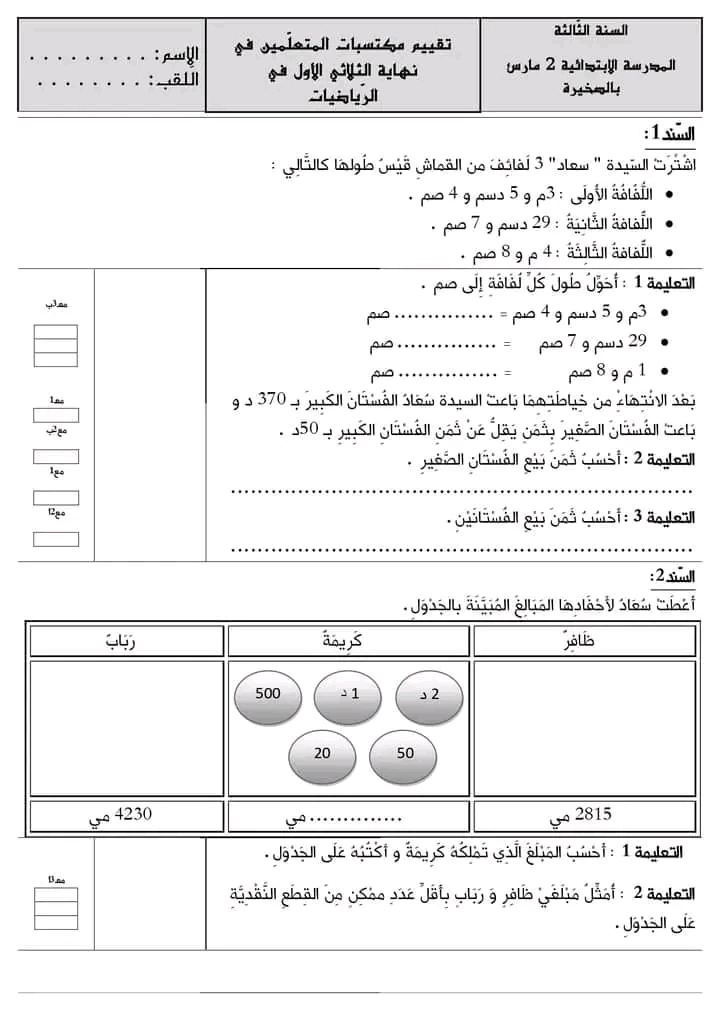 اختبار تحريبي انقليزية سنة سادسة ثلاثي 3