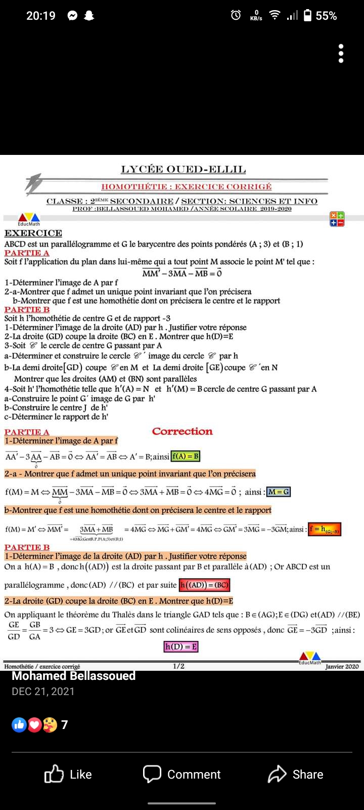 Homothetie 2 ème science corrigé