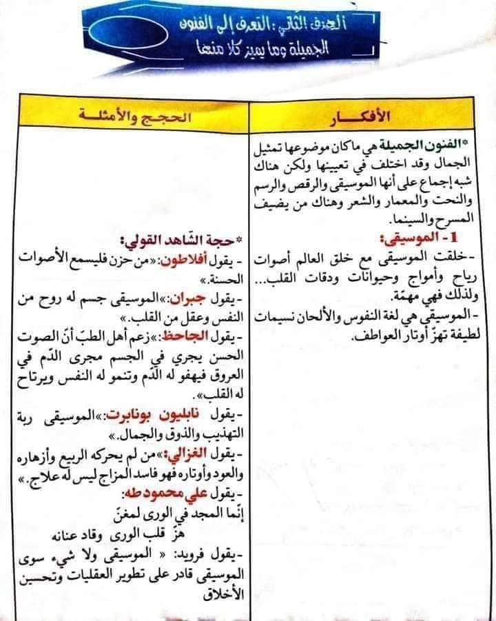 حجج من محور الفنون
