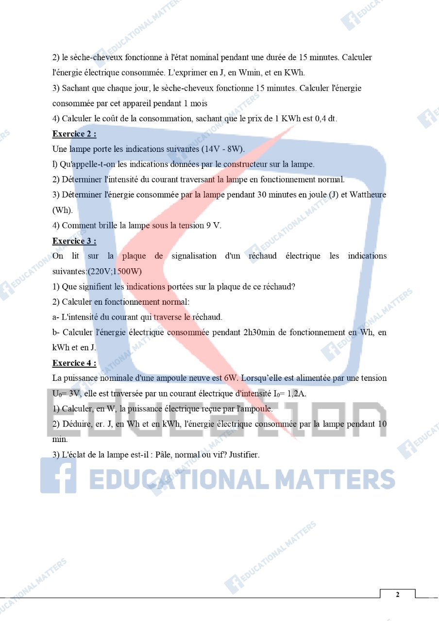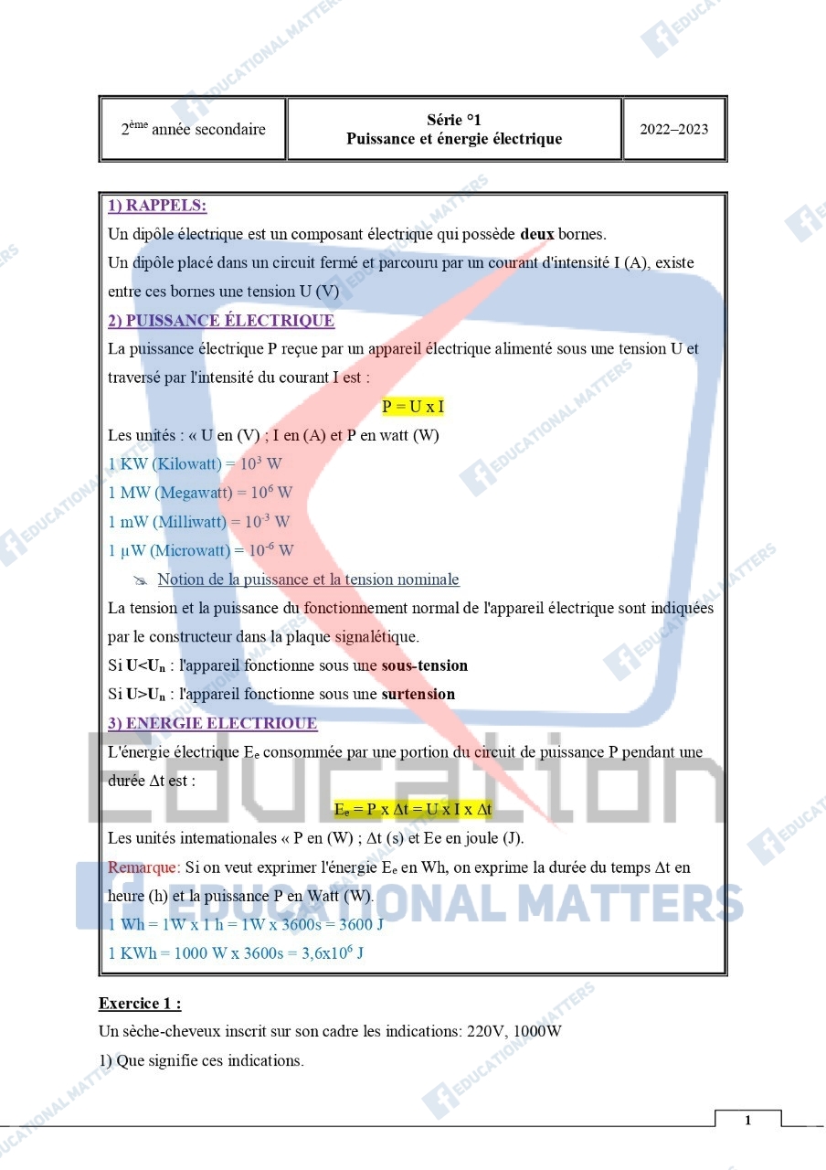 #Resumé du #cours et #Exercices ☑ 📍 Cours : Puissance et énergie électrique ⚡ ◀️ Destiné aux élèves du 2ème année secondaire 👩🏻🏫 #physique #Chimie #2ème #secondaire ... #Resumé du #cours et #Exercices ☑
