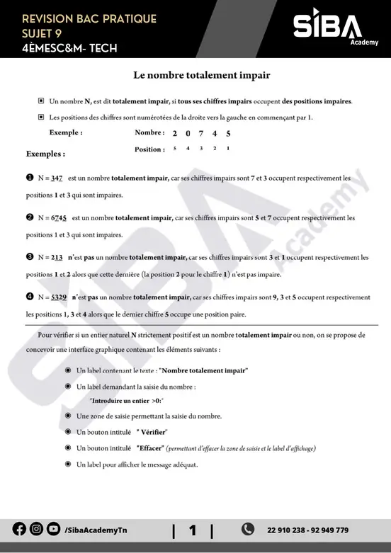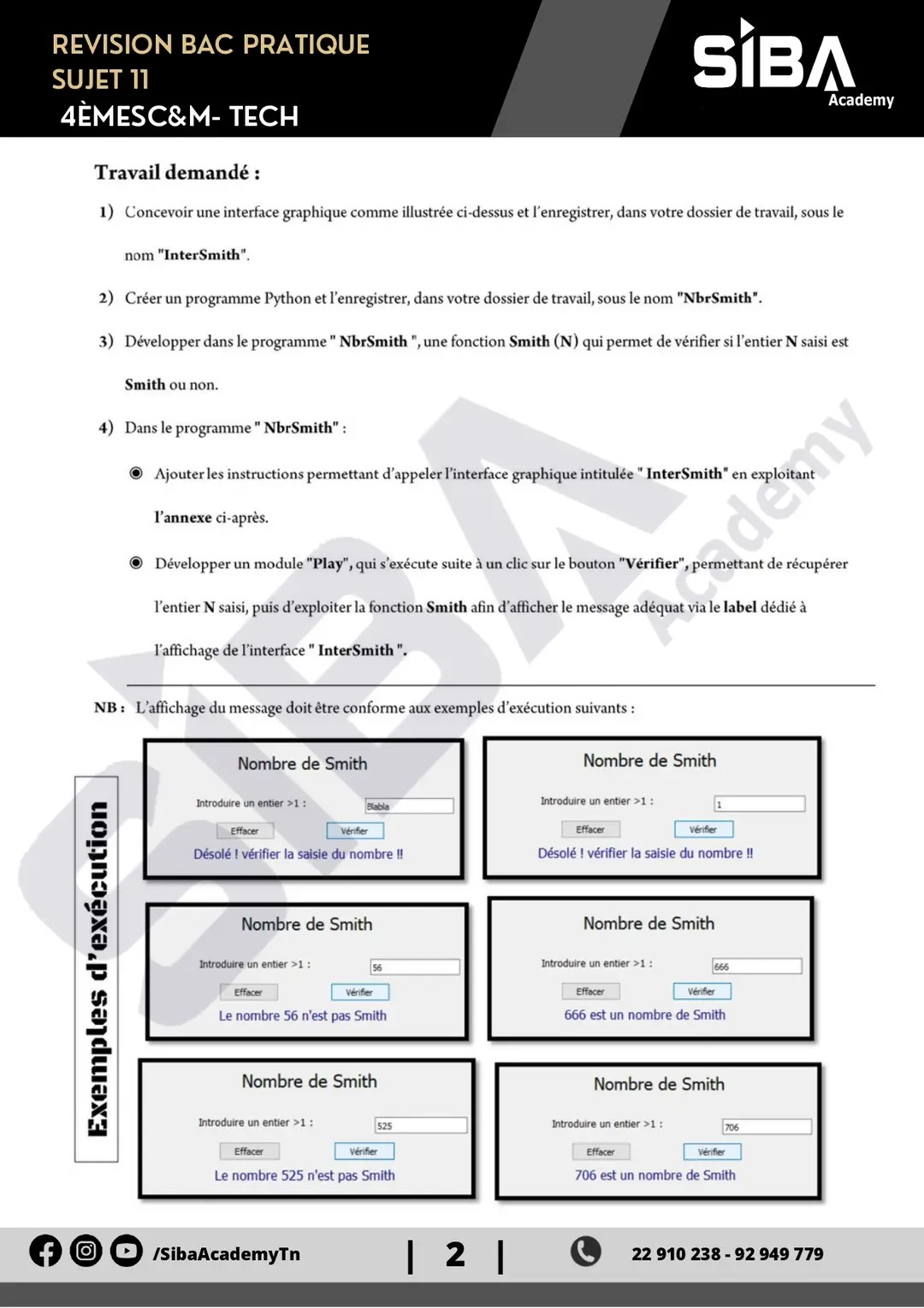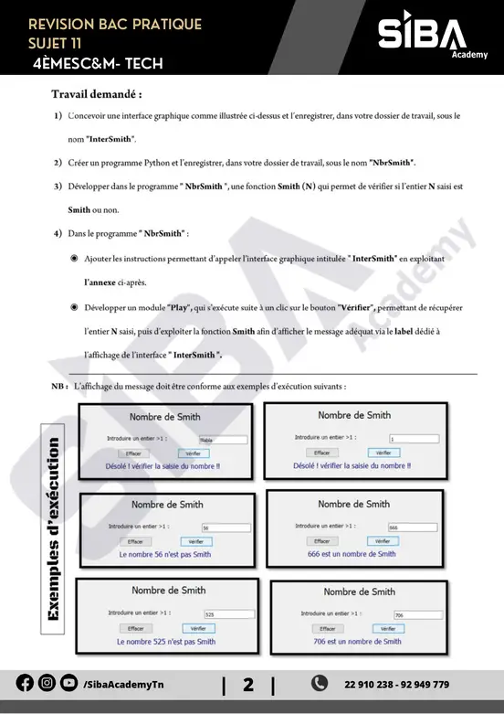 Révision Bac Pratique sujet 11 par Siba Ackademy.