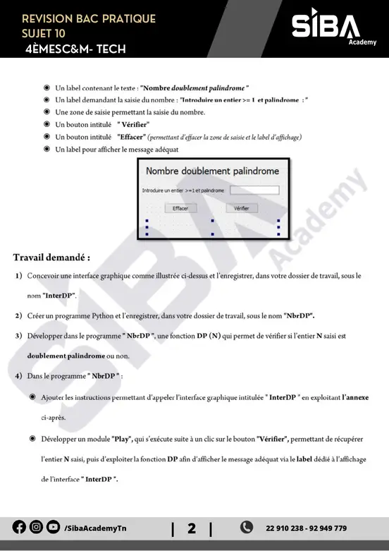 Révision Bac Pratique sujet 10 par Siba Ackademy.