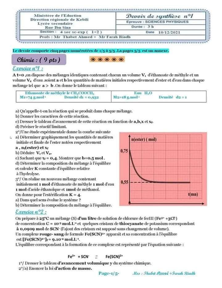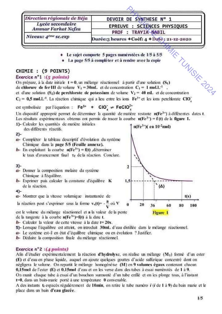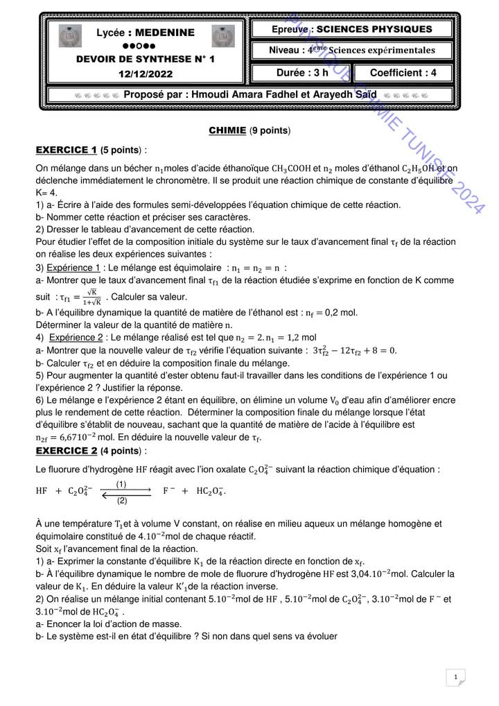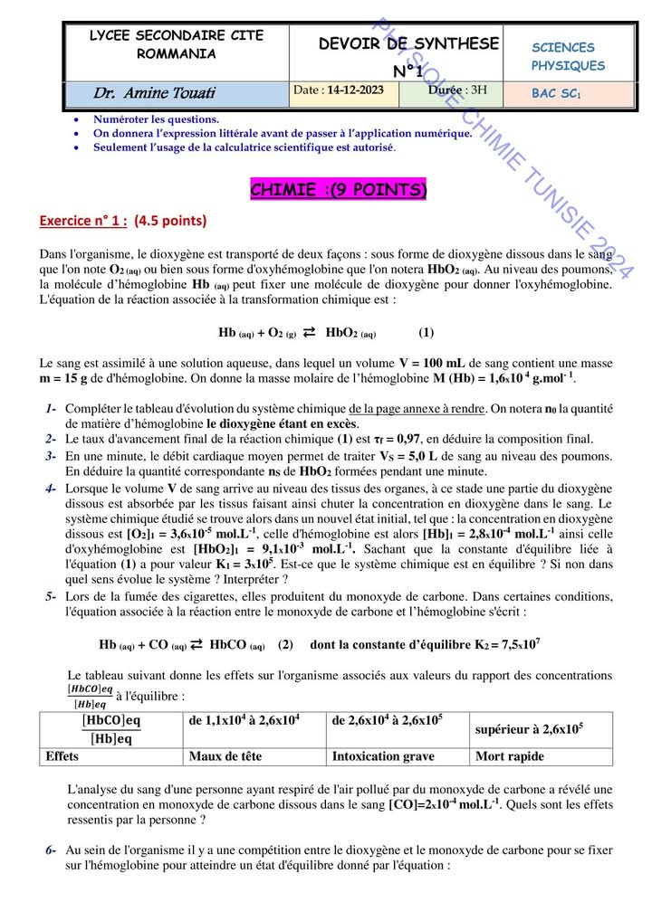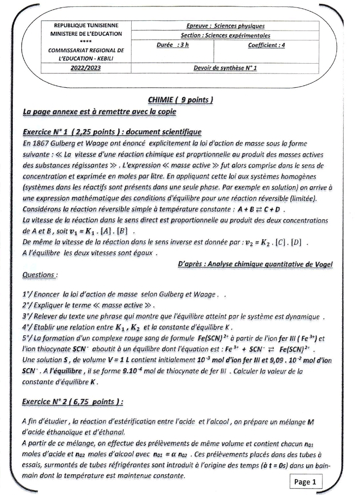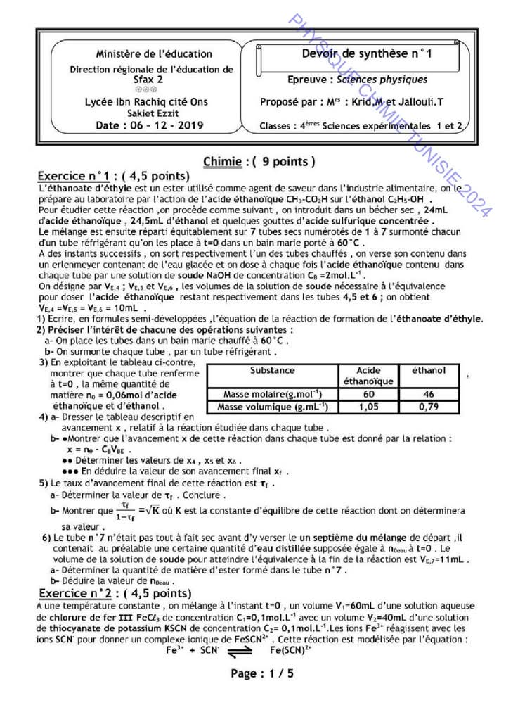 DEVOIR SYNTHESE 1 avec correction 3 SCIENCES
