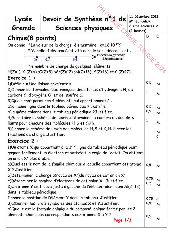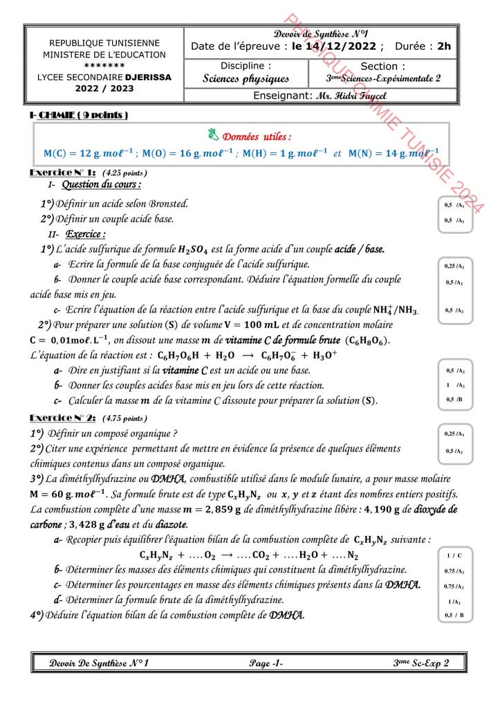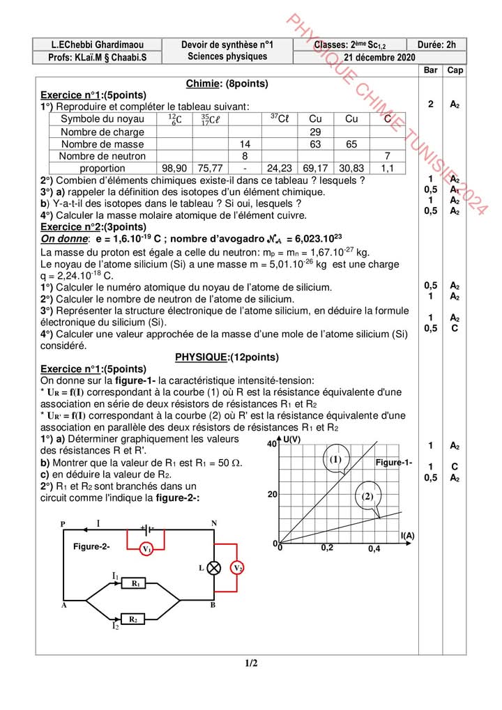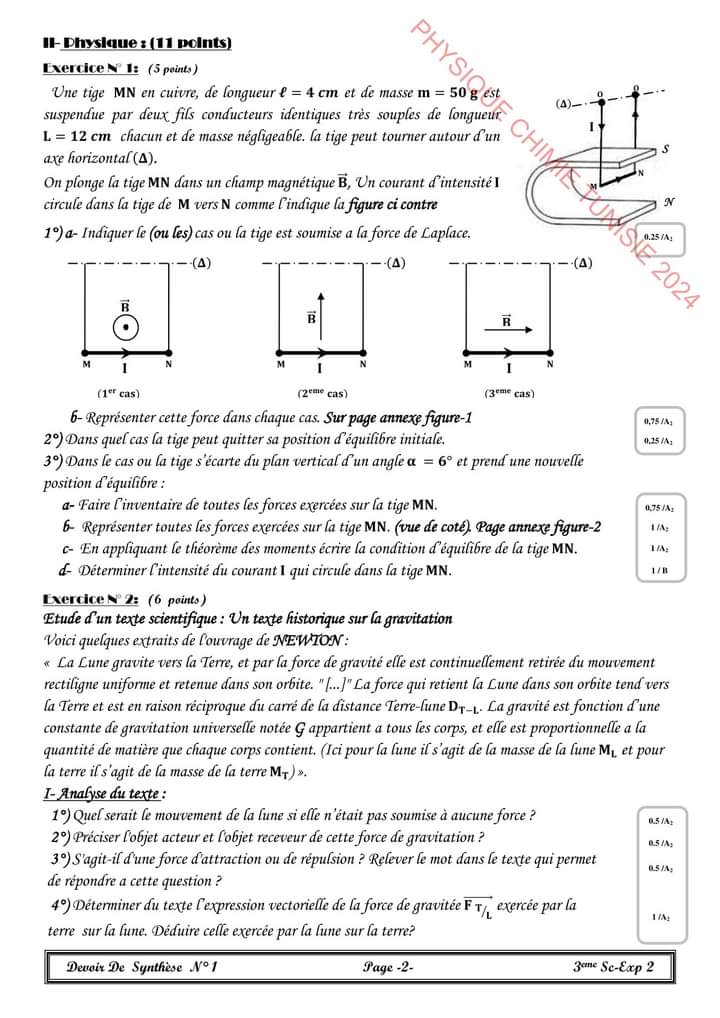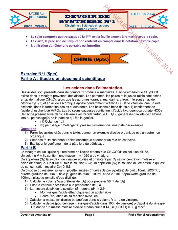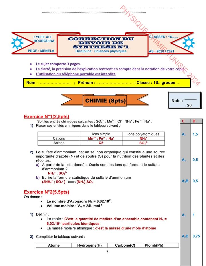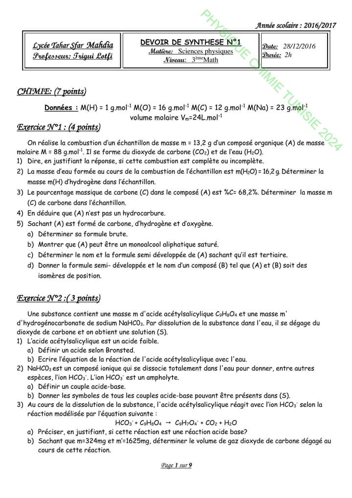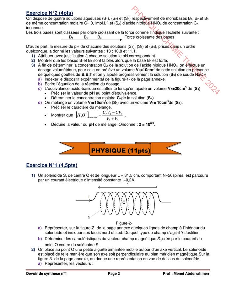 DEVOIR de SYNTHESE 1 3 physique corrigé