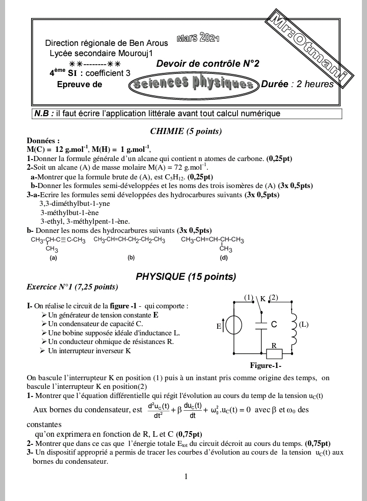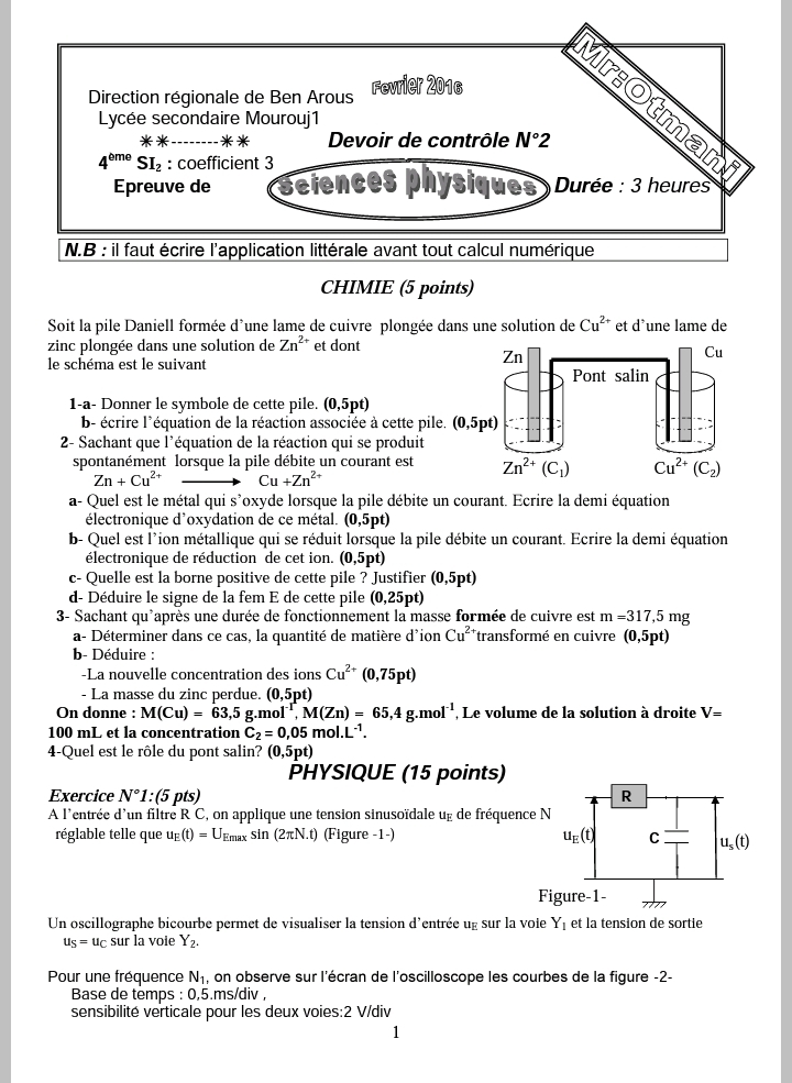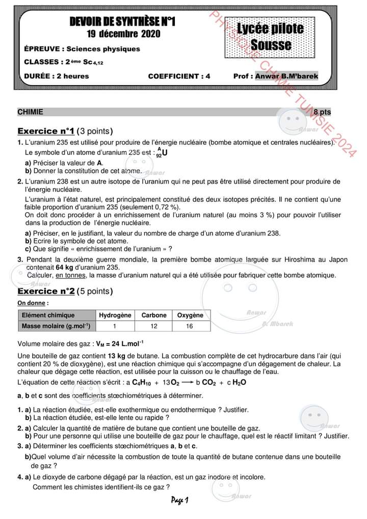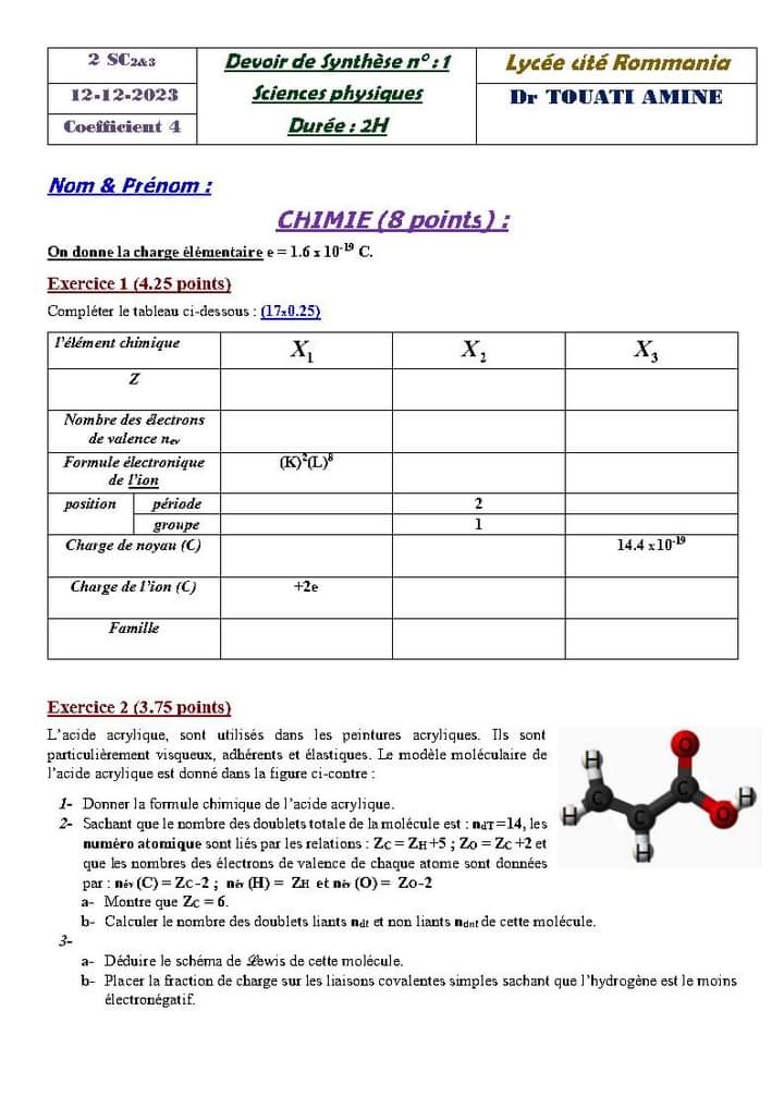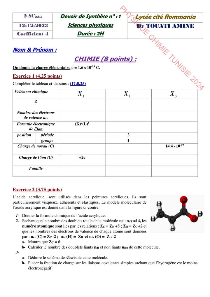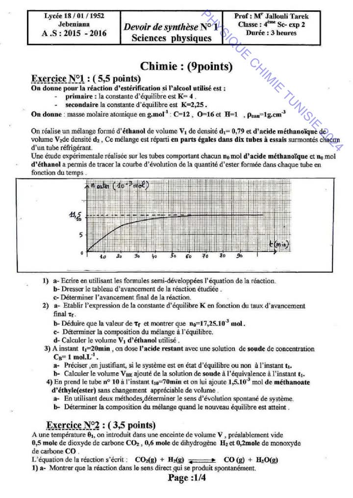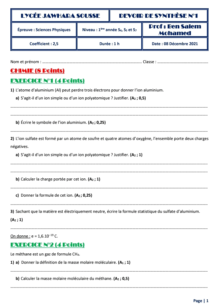 DEVOIR de SYNTHESE 1 3 physique corrigé