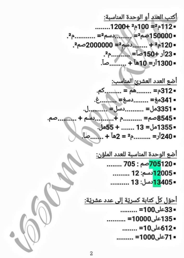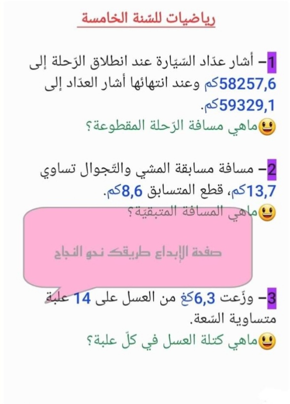 فرض رياضيات السنه السابعه الثلاثي الثالث 🐇❕