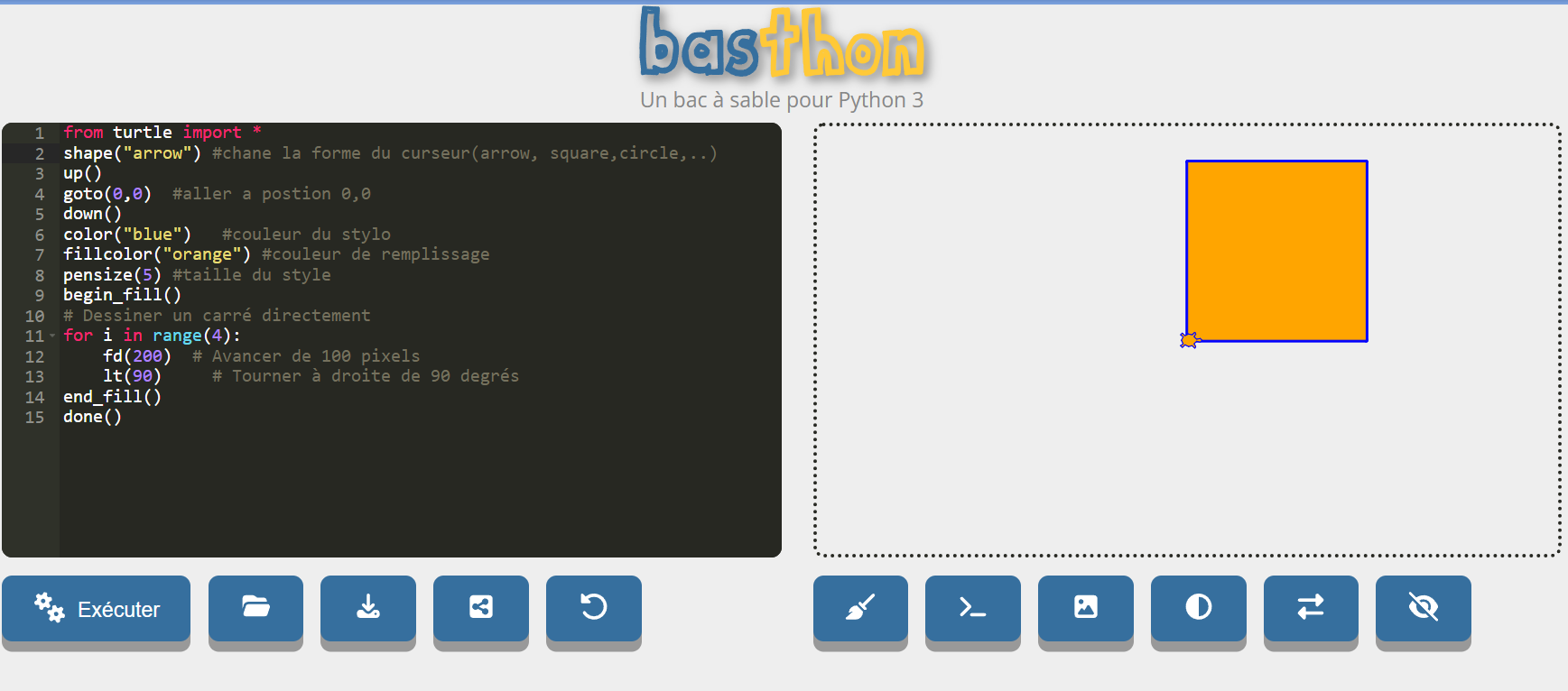 Le module turtle python dessiner des formes (cercle, carré,...)