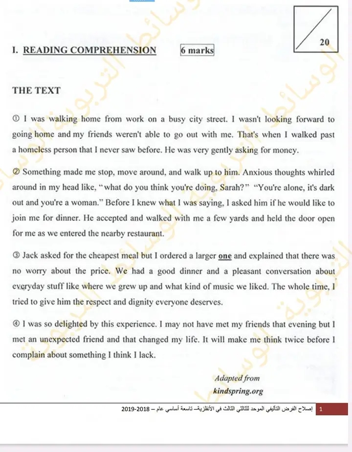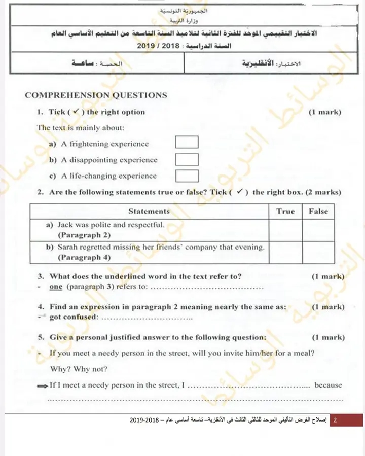الفرض التأليفي الاعدادية النموذجية بقفصة