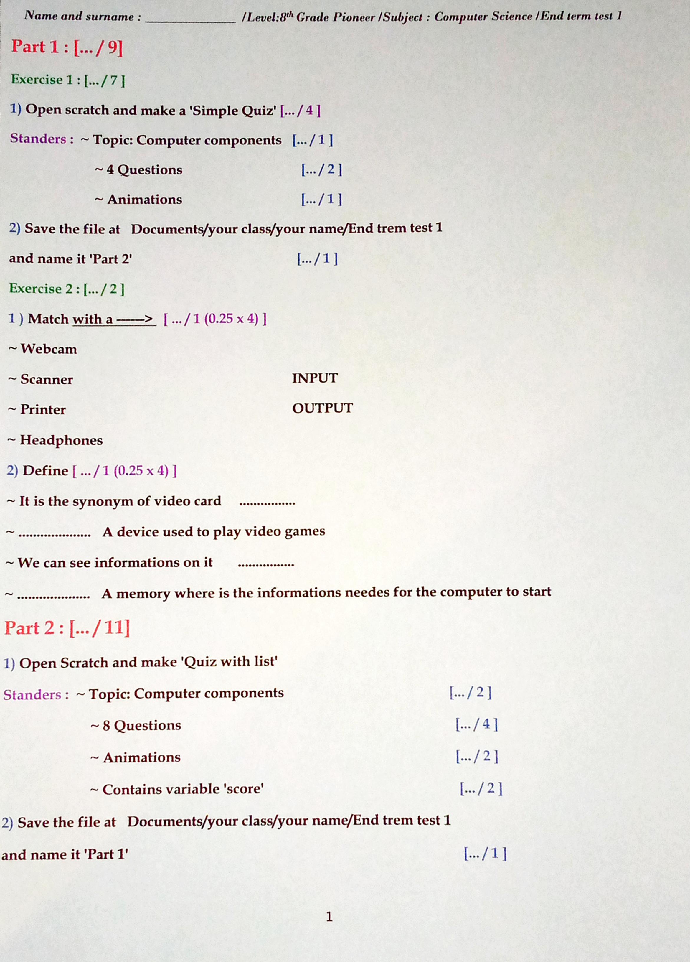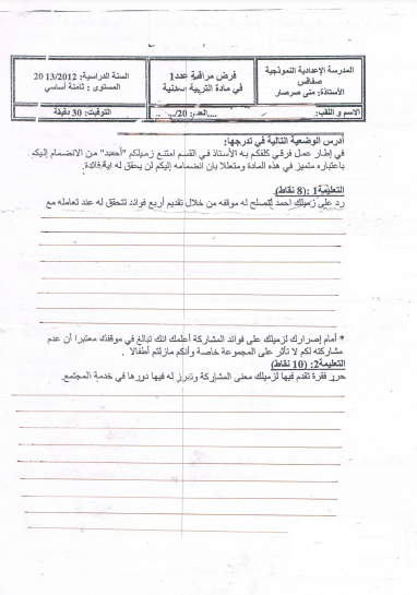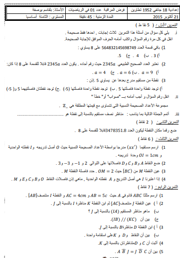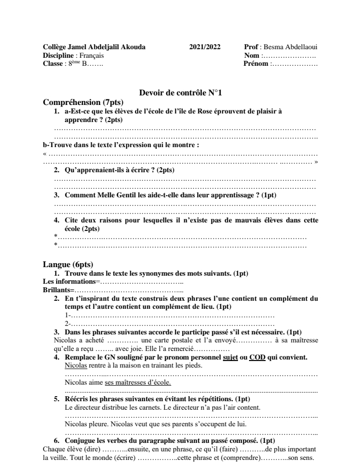 Controle 1 College Pilote Sfax