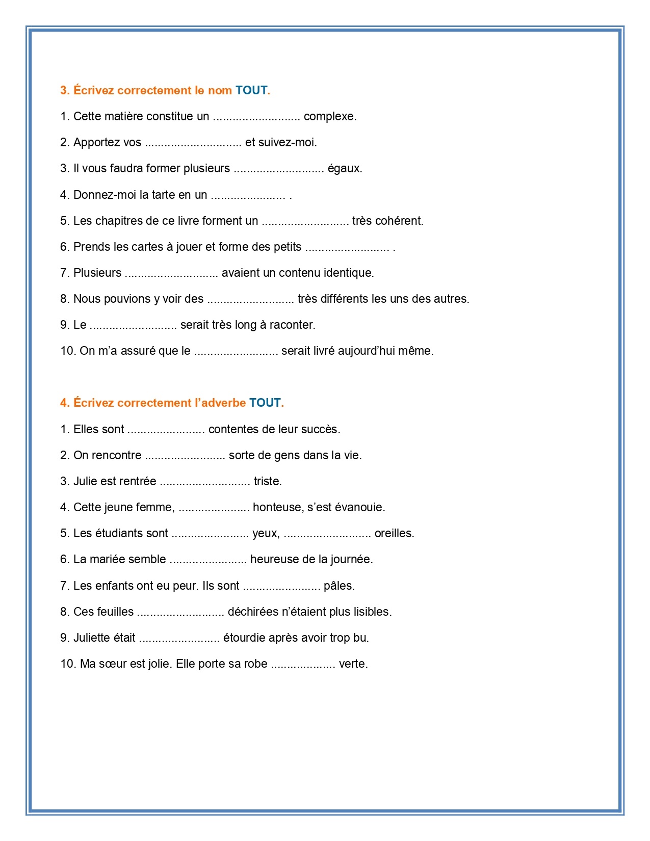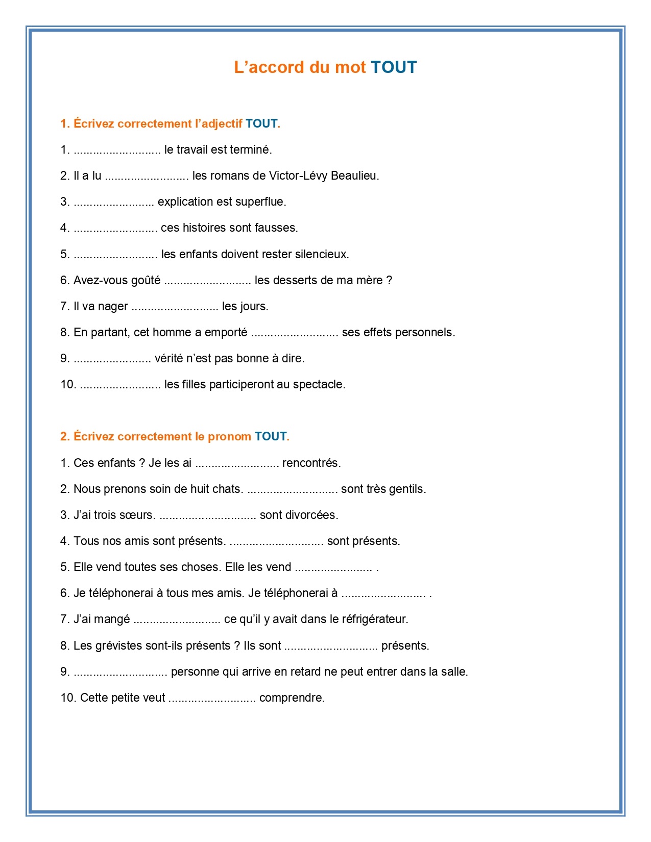 Exercices Corrigés sur l'accord du tout pour les élèves de 9ème de base