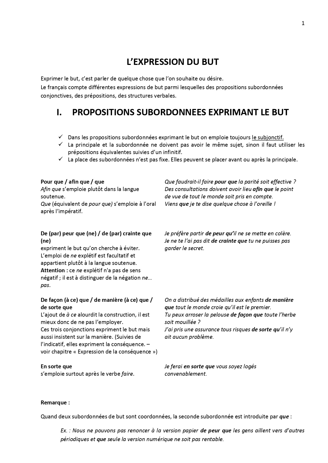 L'expression du but : Cours détaillé enrichi de nombreux exemples accompagné d'exercices pertinents pour bien comprendre comment exprimer le but (Lycée et Collège)