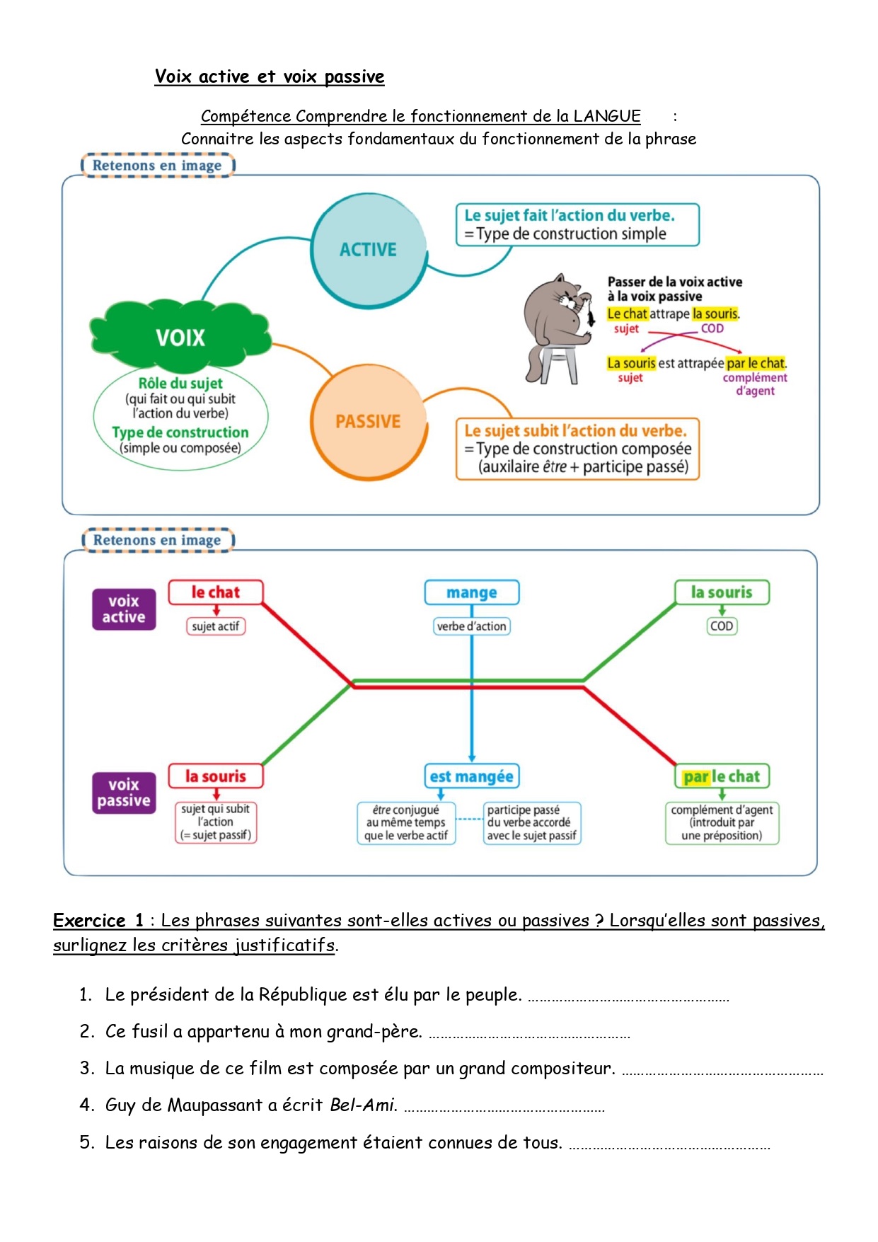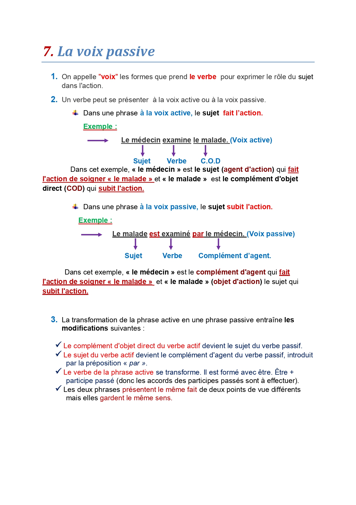 La voix passive et la voix active : Explication bien détaillée accompagnée de nombreux exercices corrigés pour les élèves de 9 -ème de base.