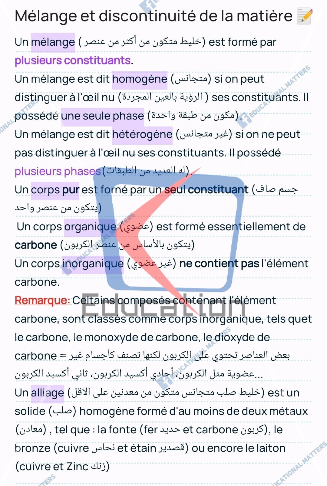 Mélange et discontinuité de la matière 1ère année secondaire
