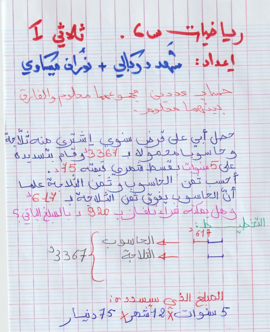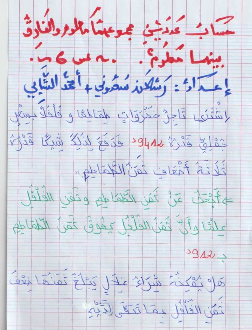 اختبار الثلاثي لأول خامسة أساسي ( انتاج كتابي )