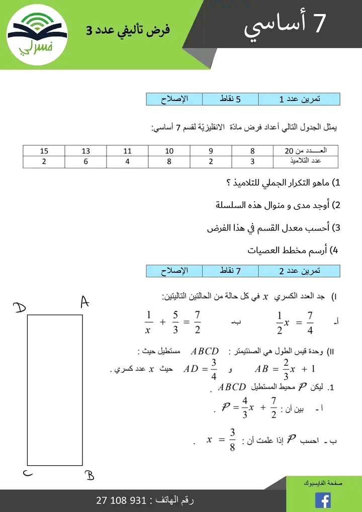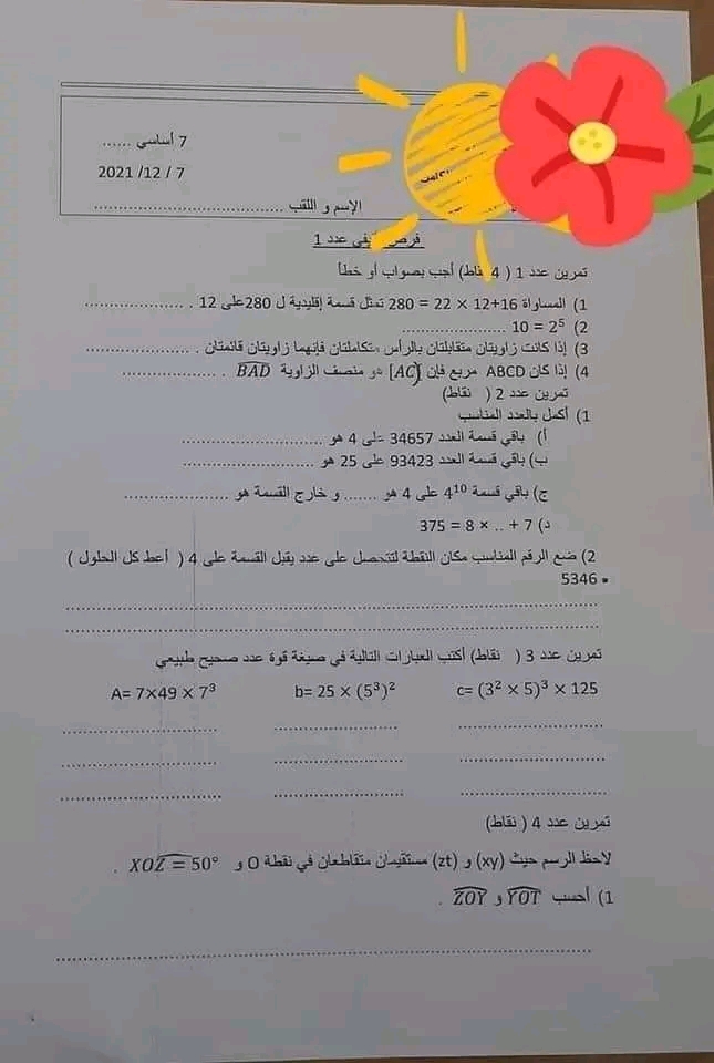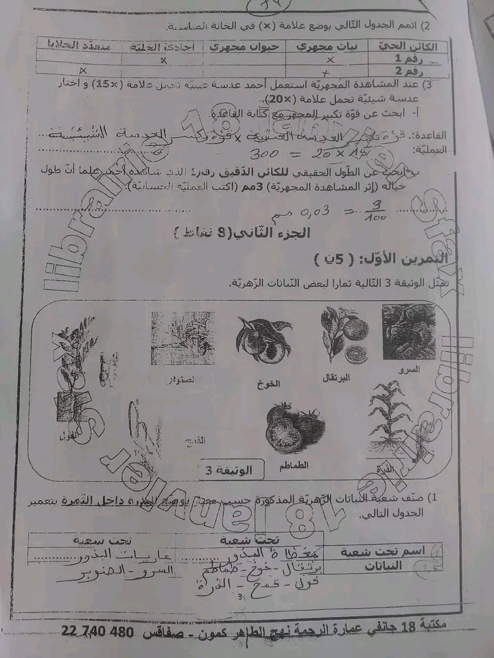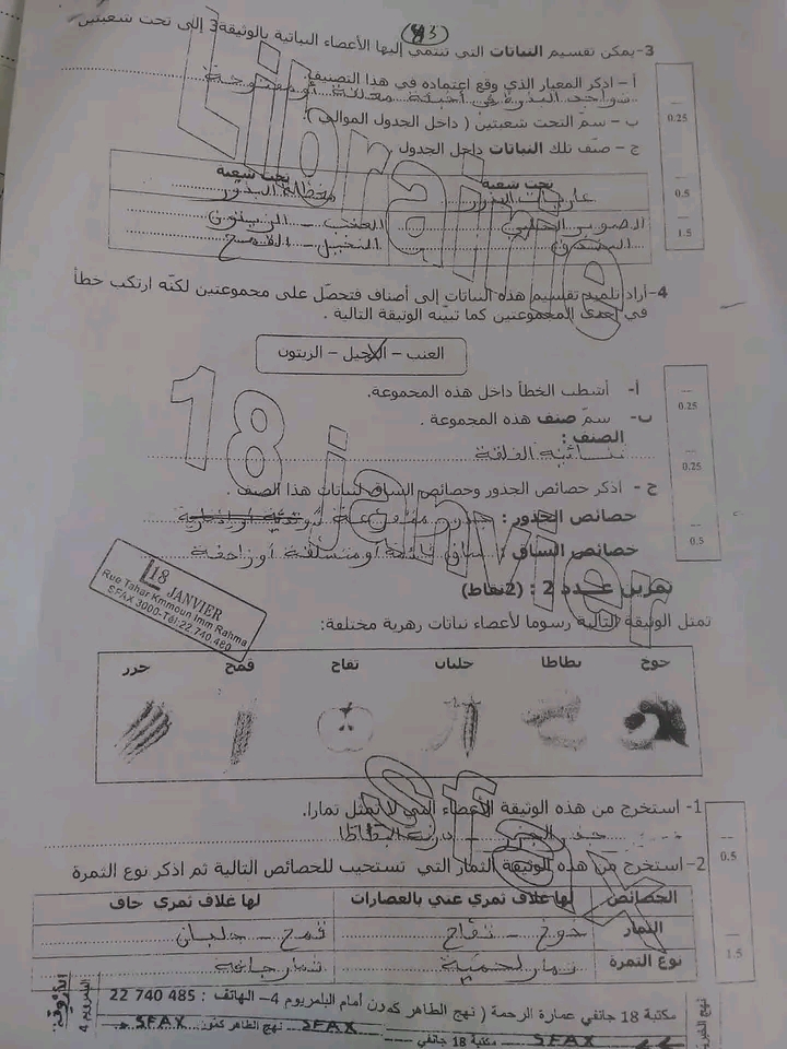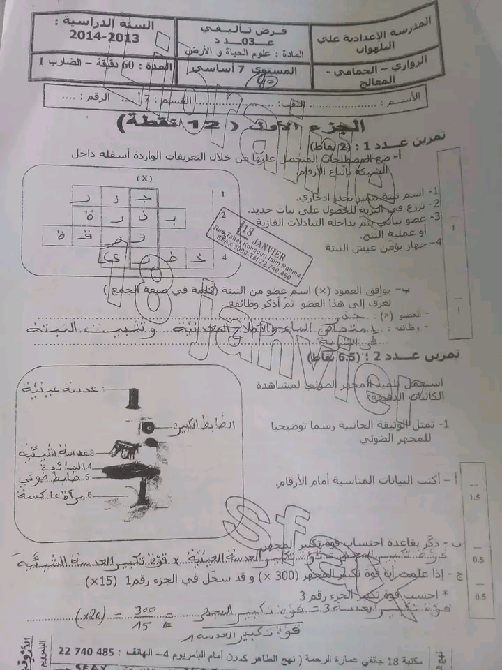 7eme تمرين علوم الأر ض و الحياة