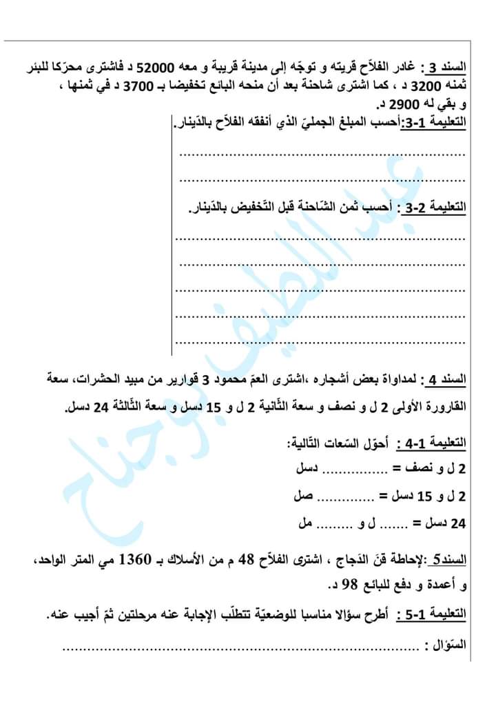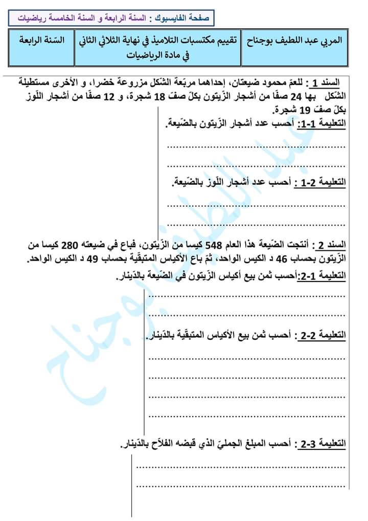 تقييم رياضيات مرفق باصلاح