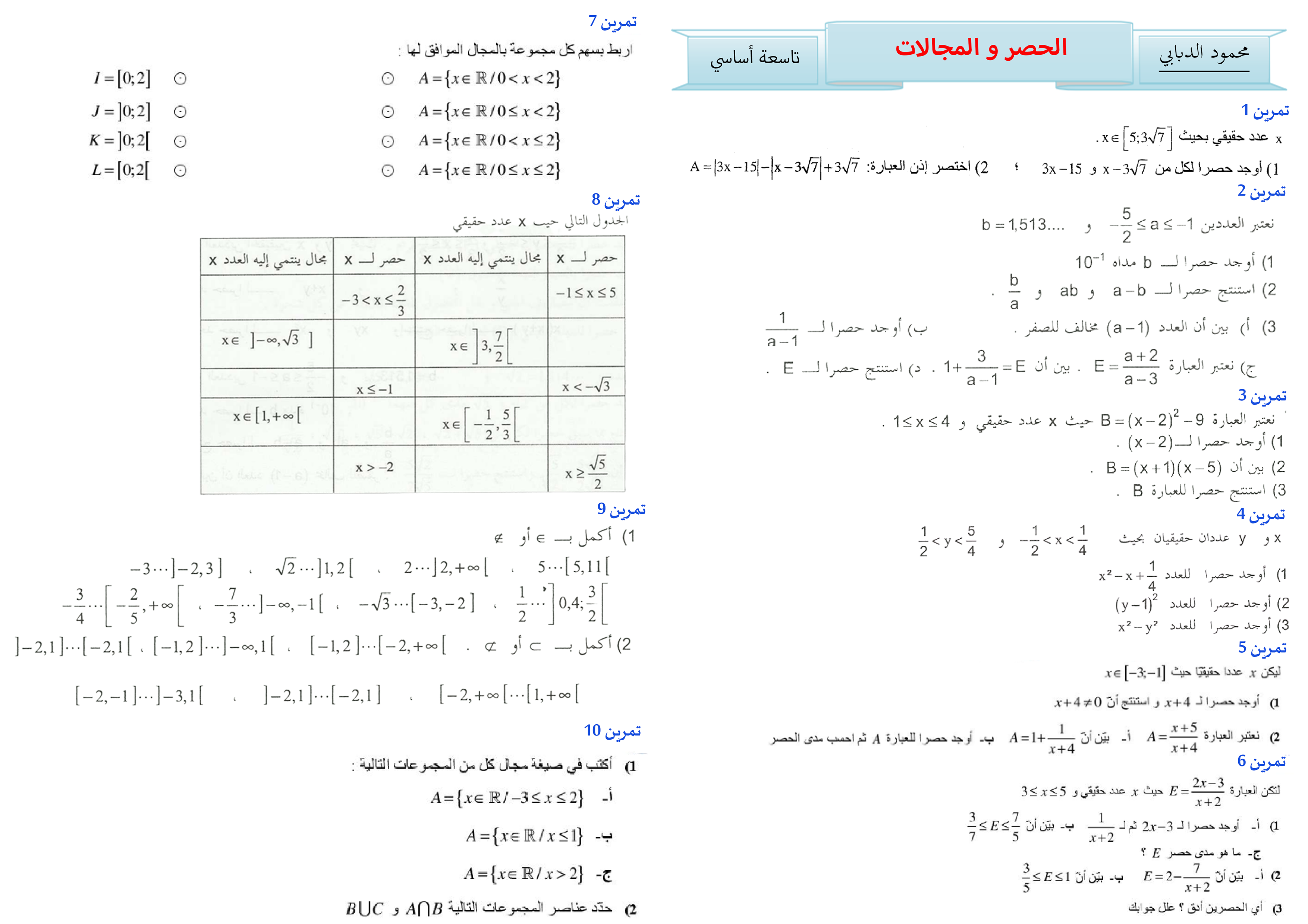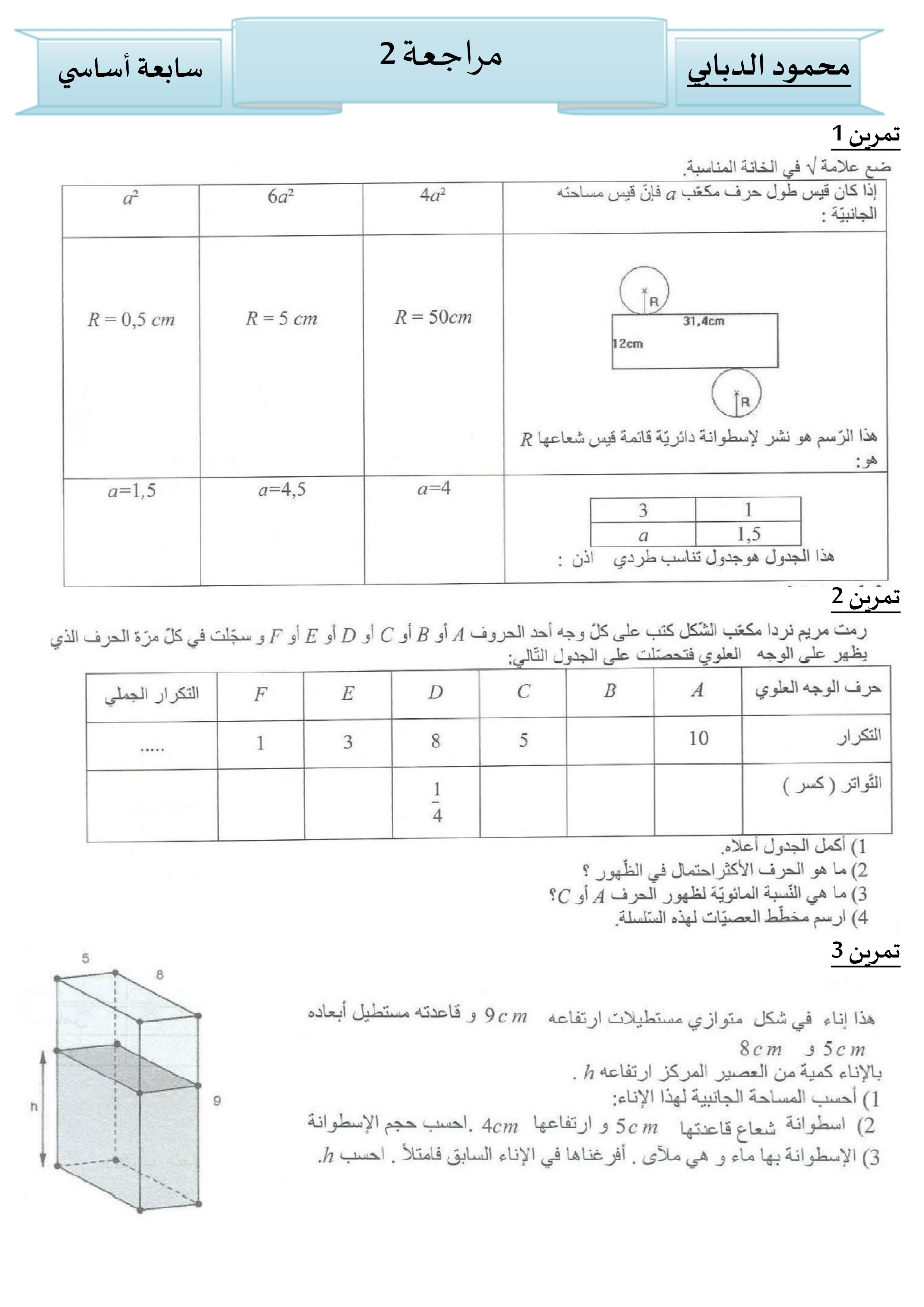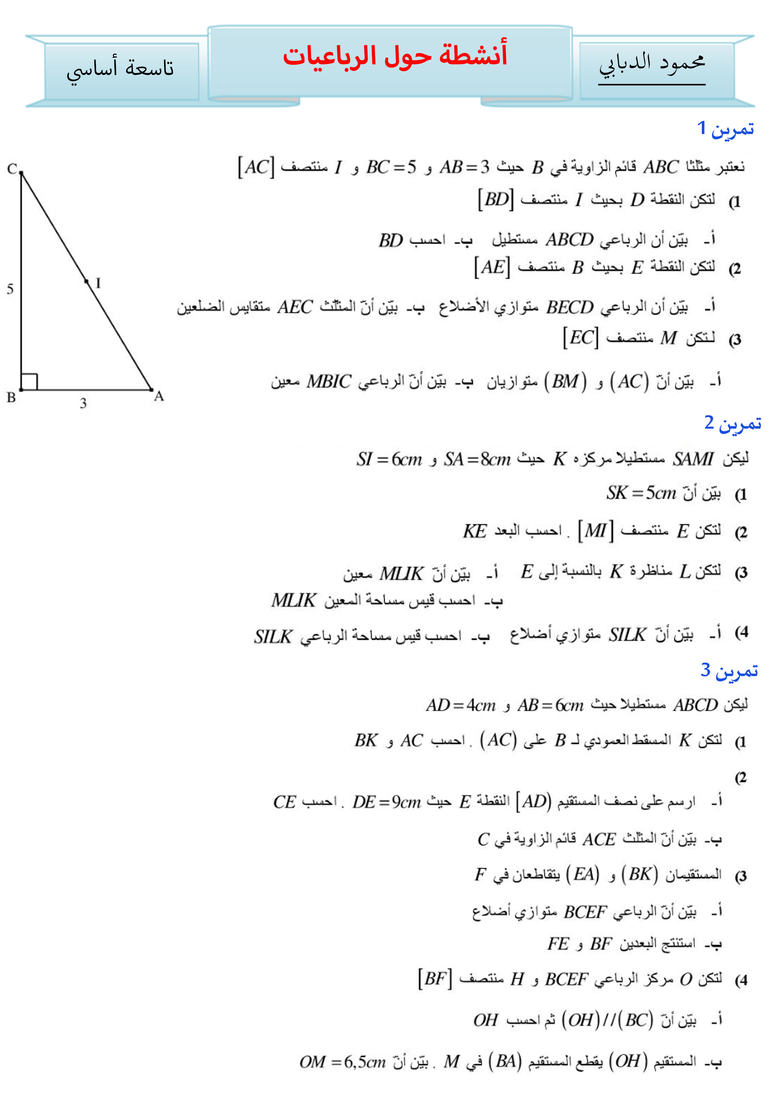 المدرسة الإعدادية ببنان - فرض موحد للثلاثي الثالث