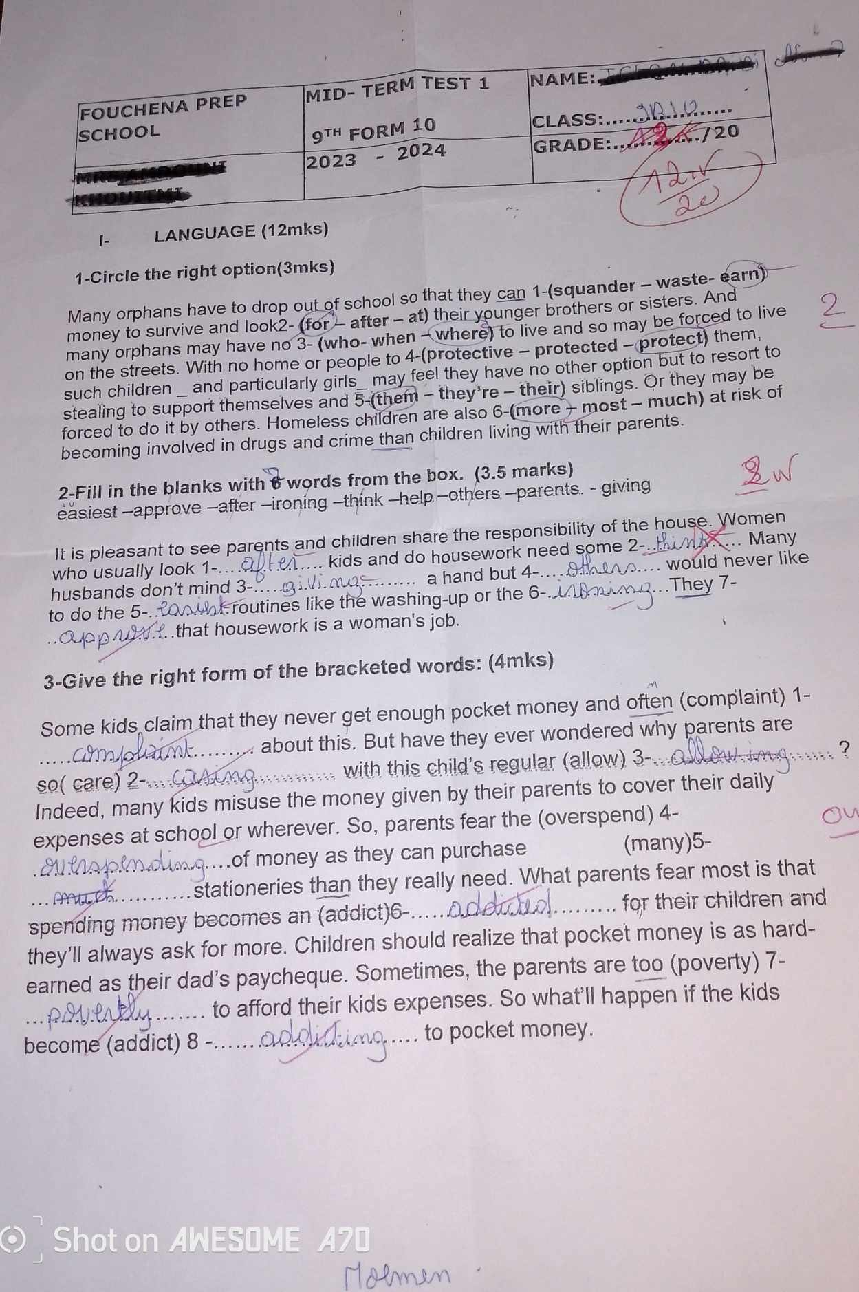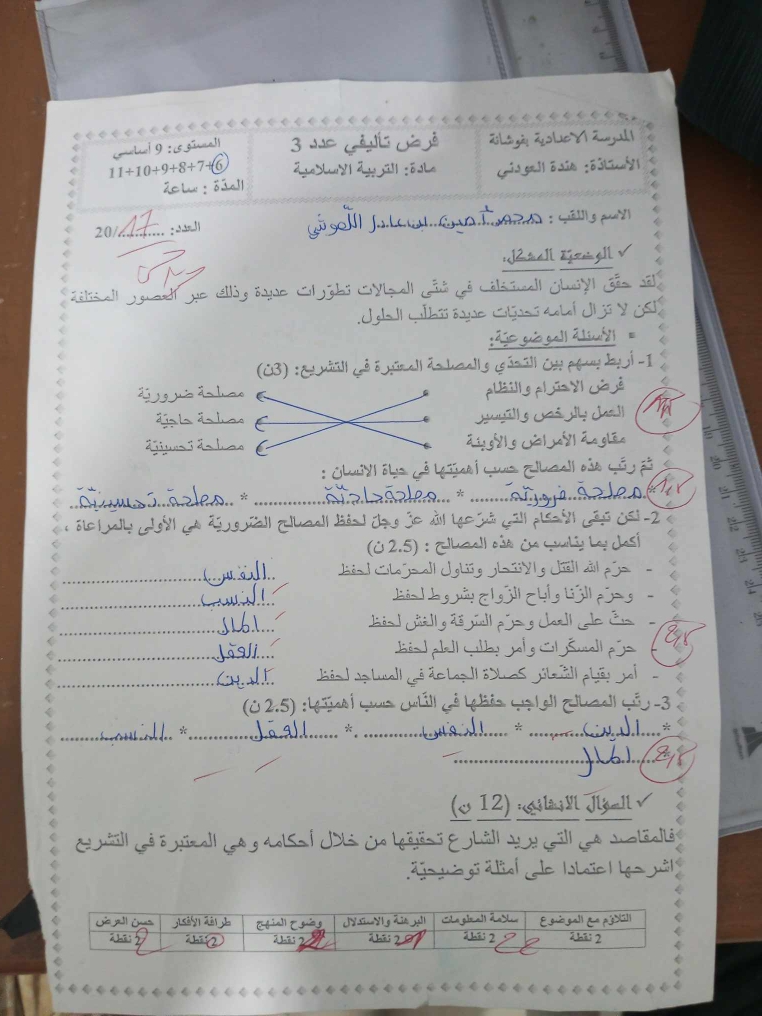 فرض تاليفي 3تربية مرفق بالاصلاح