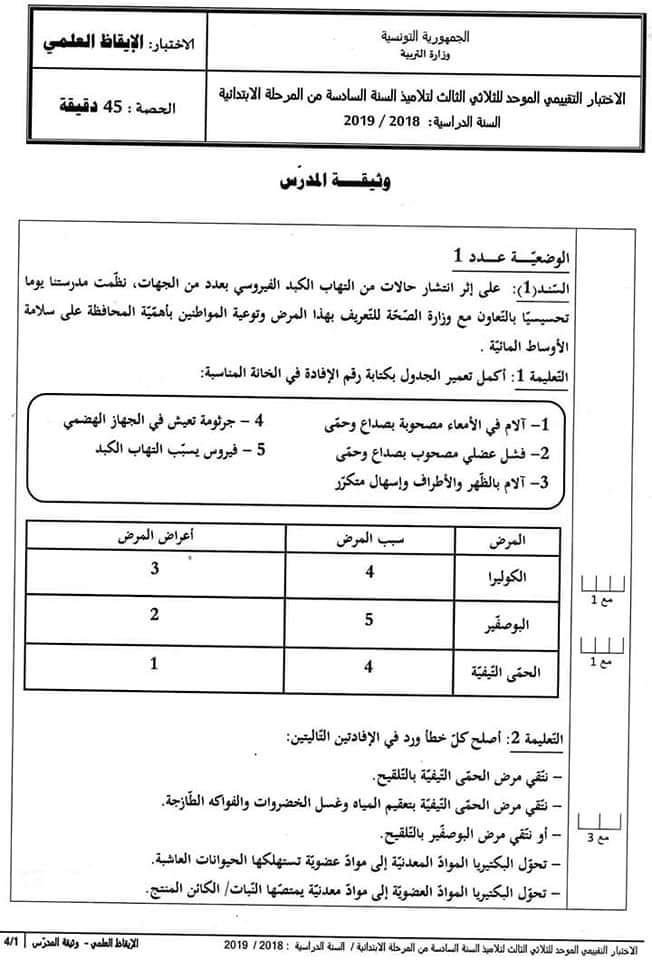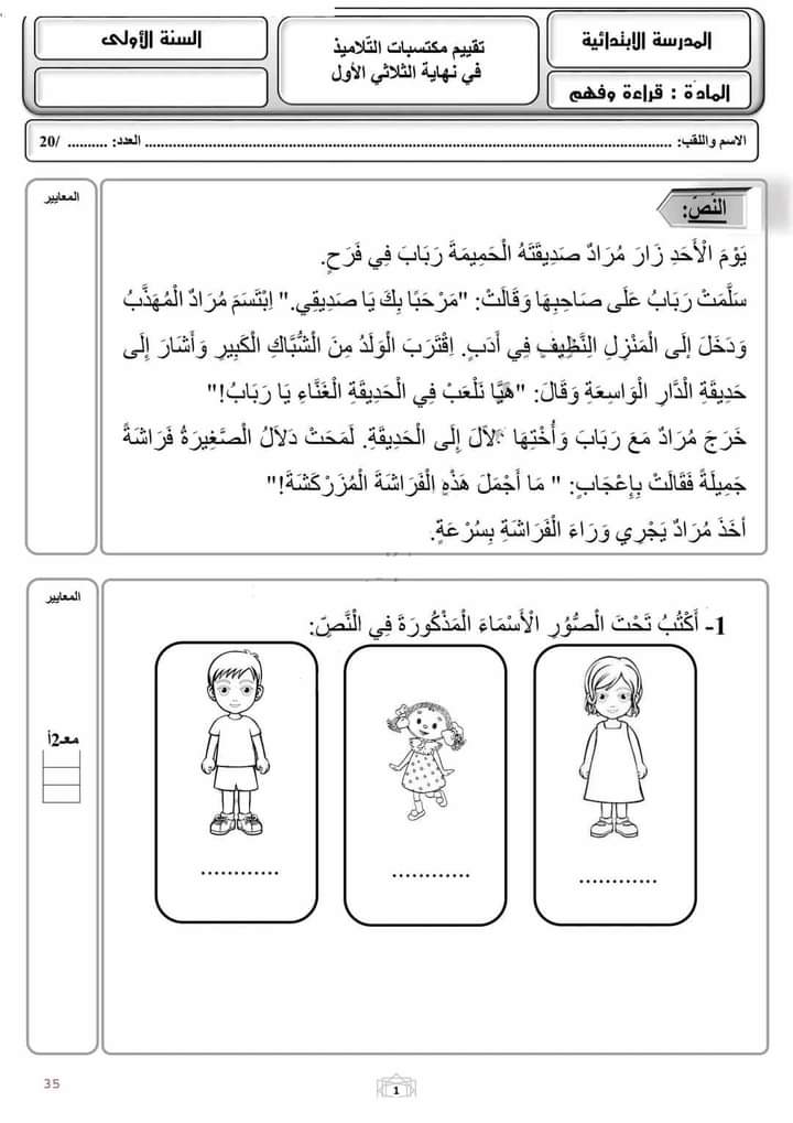 تقييم قراءة وفهم سنة اولى