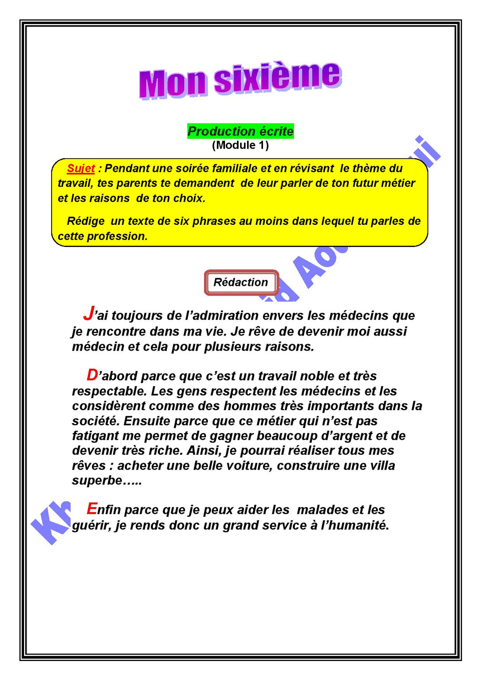 joli sujet sur le metier