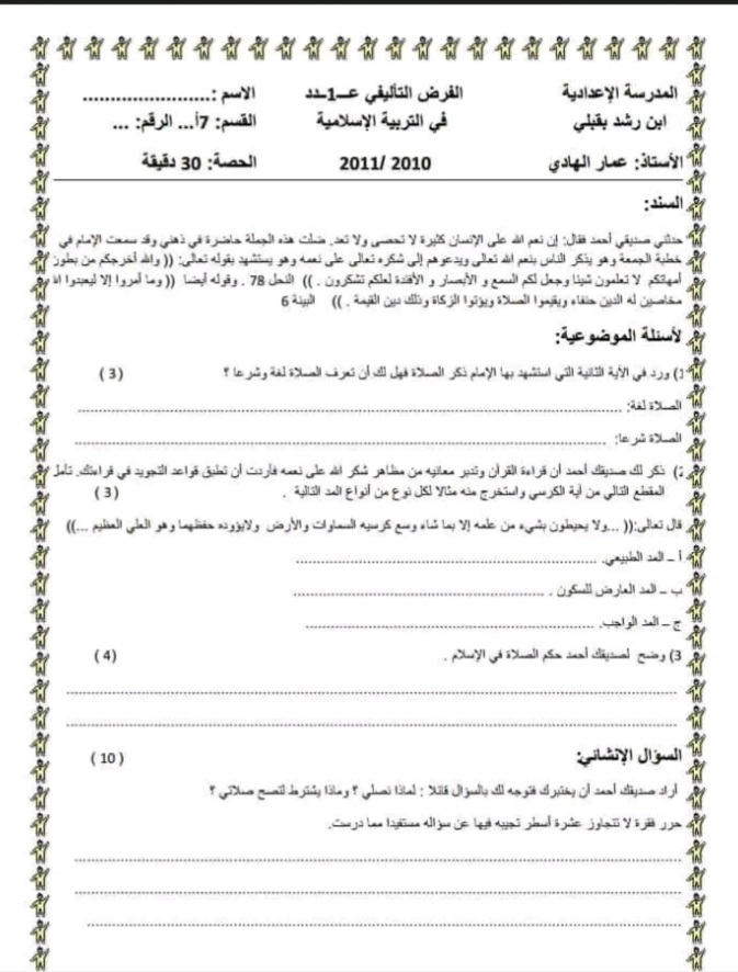 فرض تأليفي عدد1للسنة السابعة اساسي