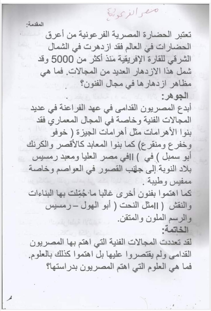 تاريخ سنة السابعة اساسي الحضارة المصرية الفرعونية