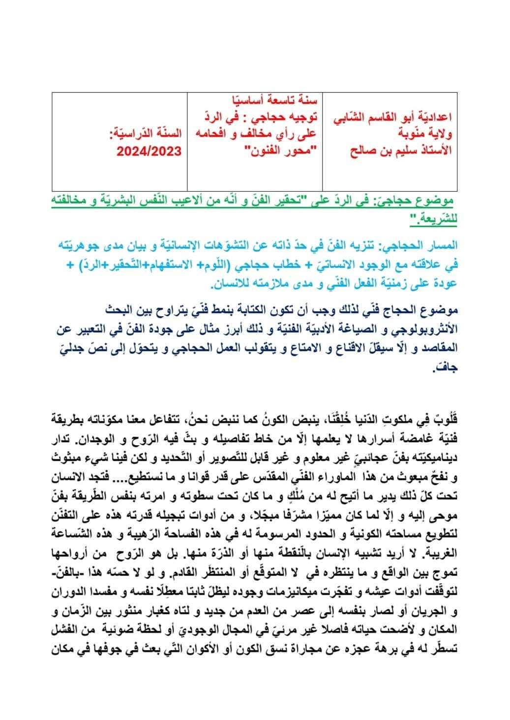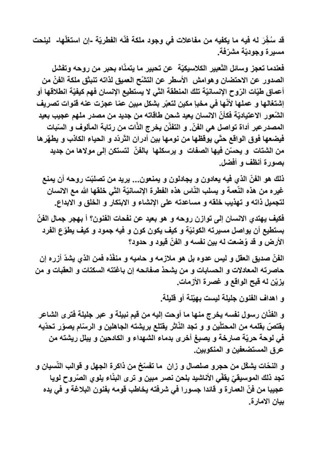 موضوع حجاحي حول محور الفنون