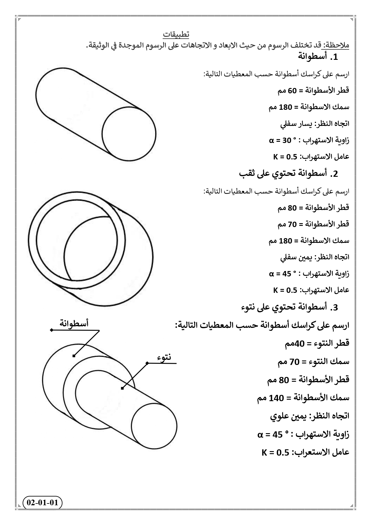 انجاز الرسم الثلاثي الابعاد القطع الاسطوانية