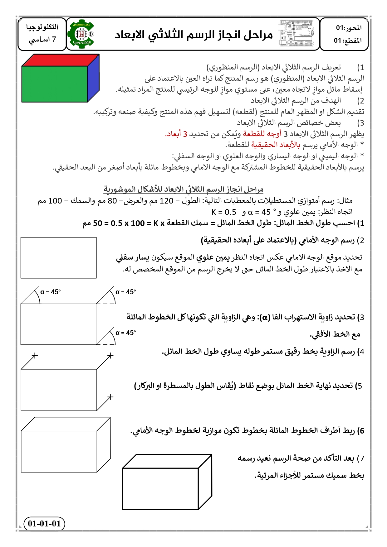 الرسم الثلاثي الابعاد 7 اساسي