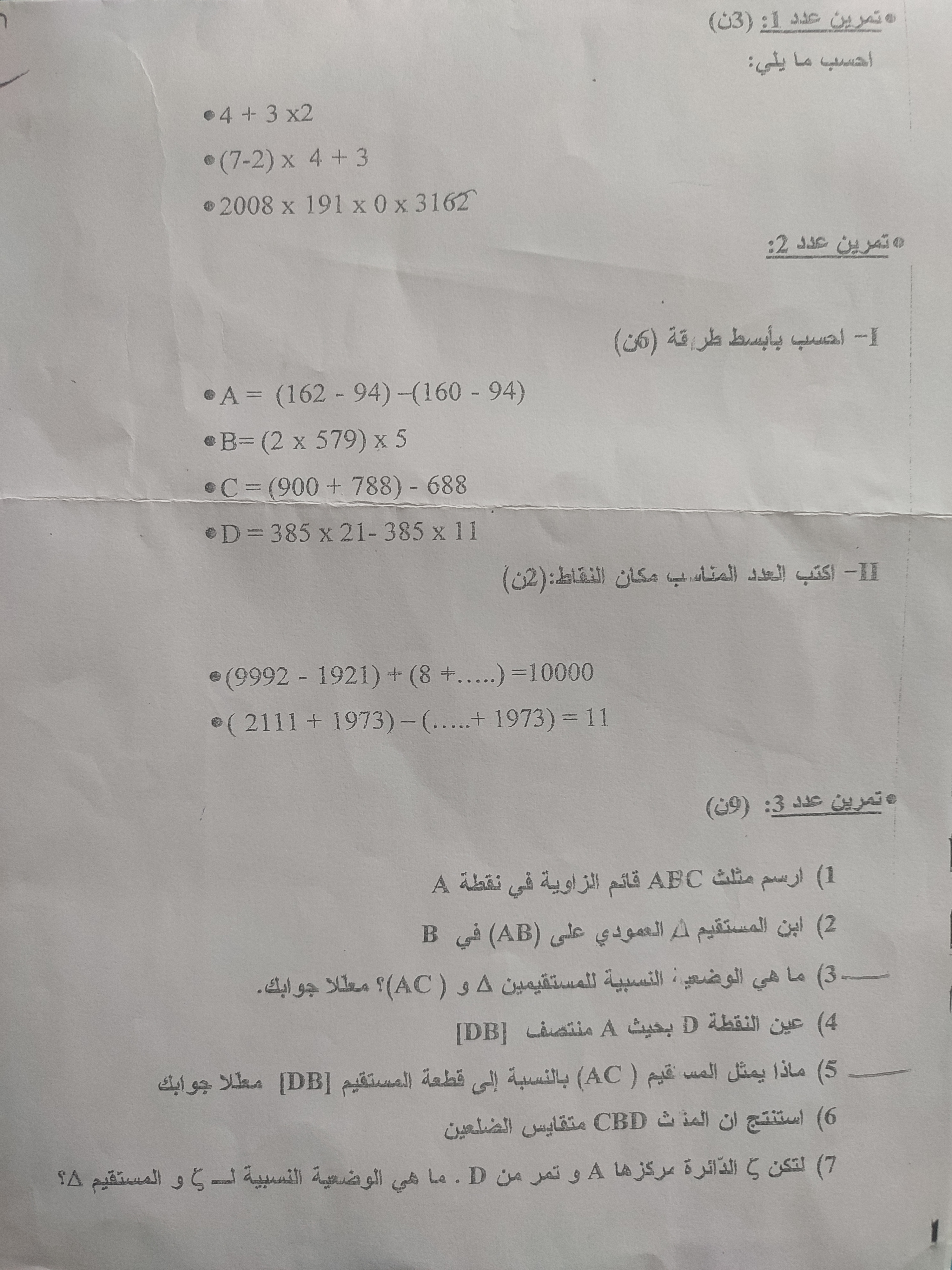 فرض مراقبة عدد 2 دراسة النص ثلاثي 2 عربية
