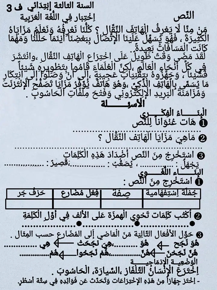 السنة الثالثة ابتدائي