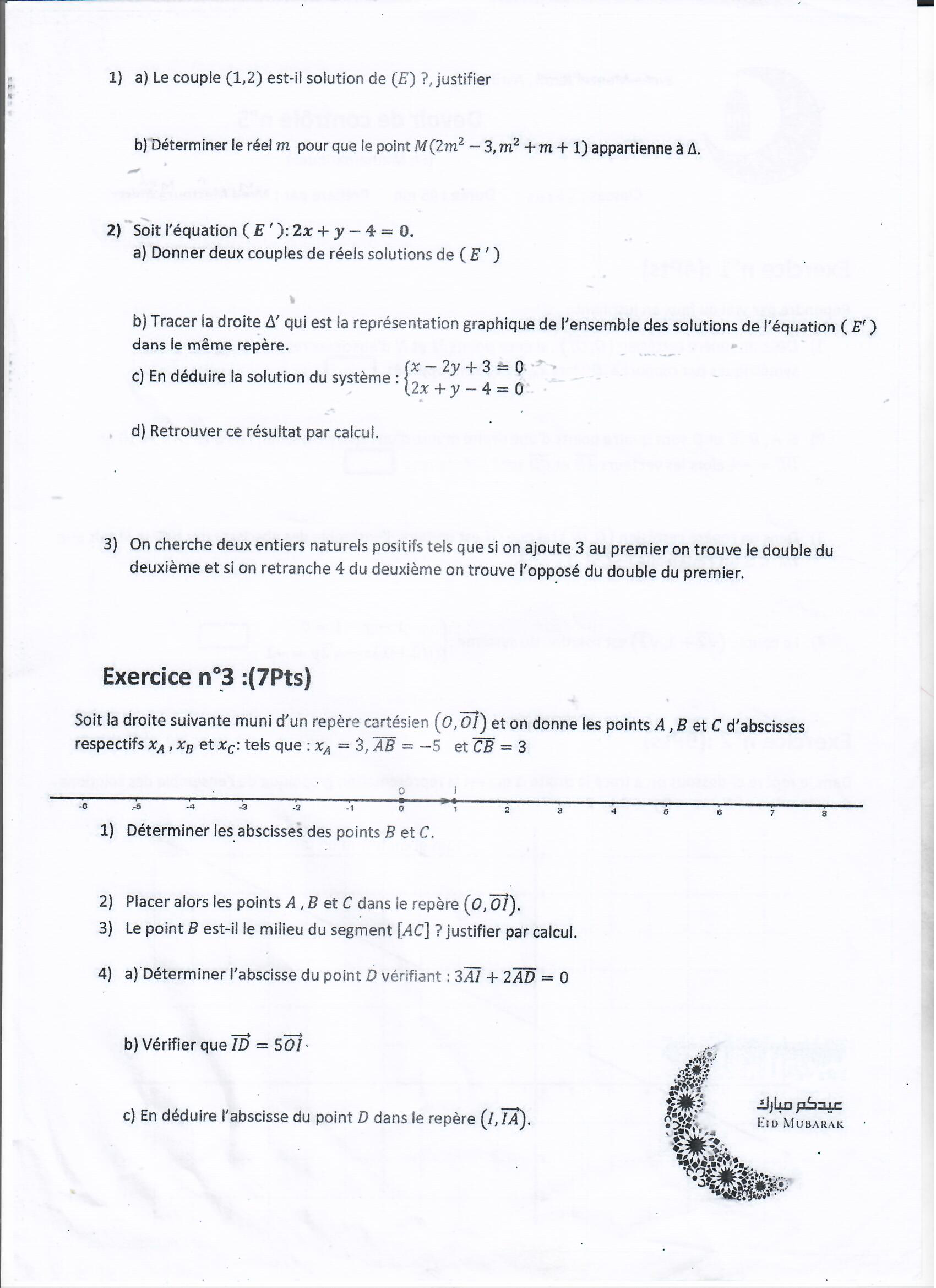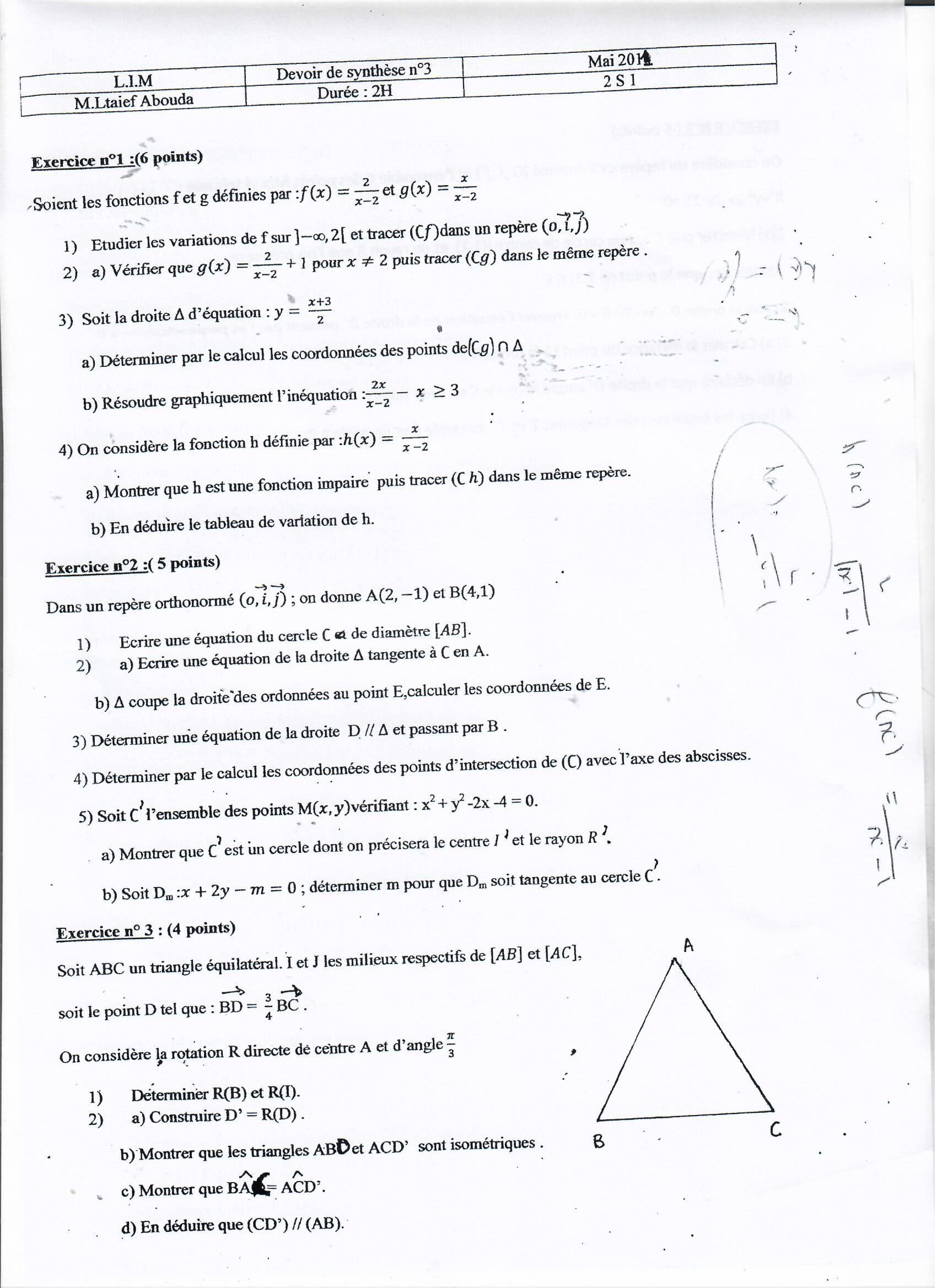 devoir de synthese 3 math
